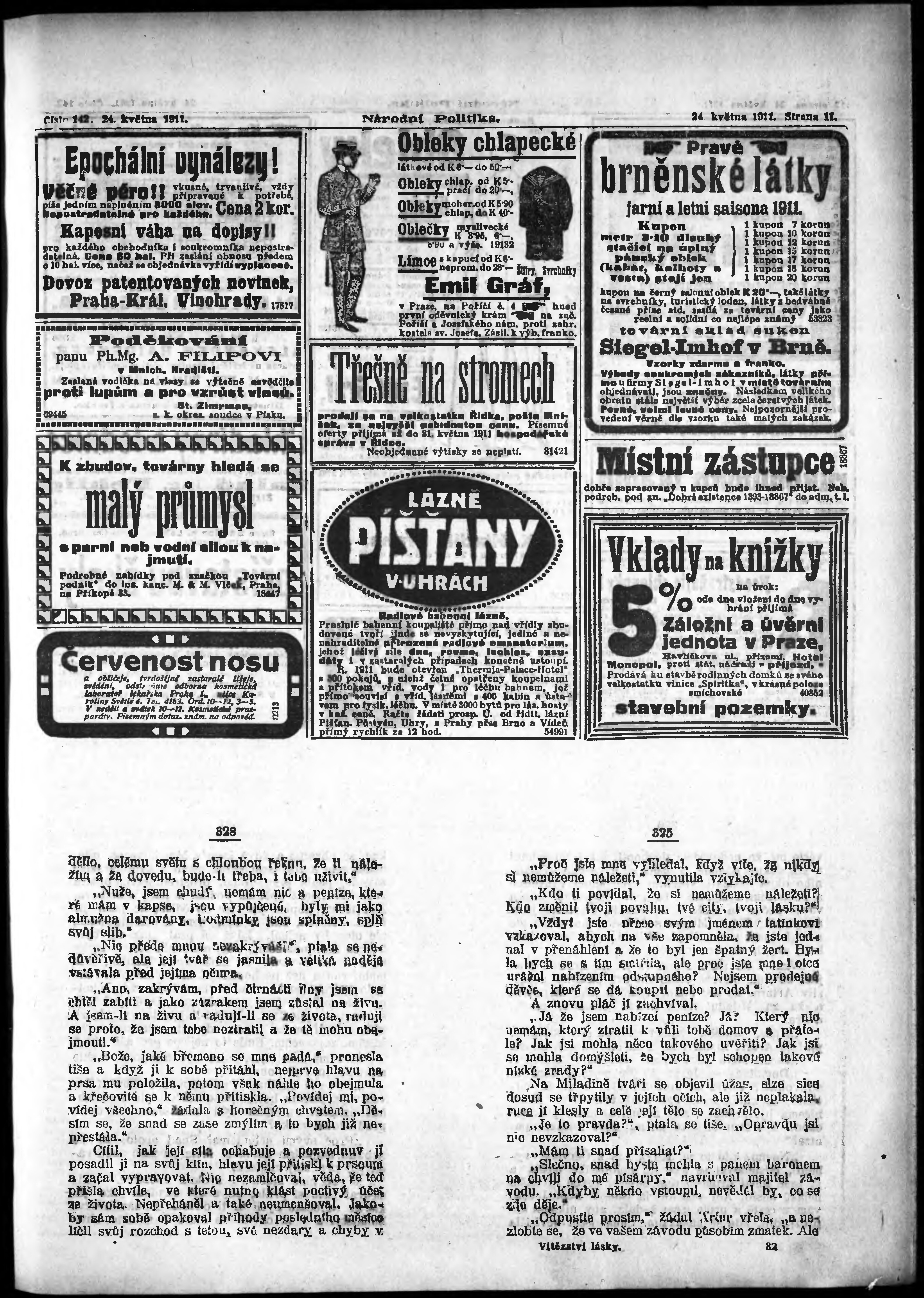 * Datum vydání výtisku: 24.5.1911 Číslo výtisku: 142 Poznámky k výtisku: ranní vydání;