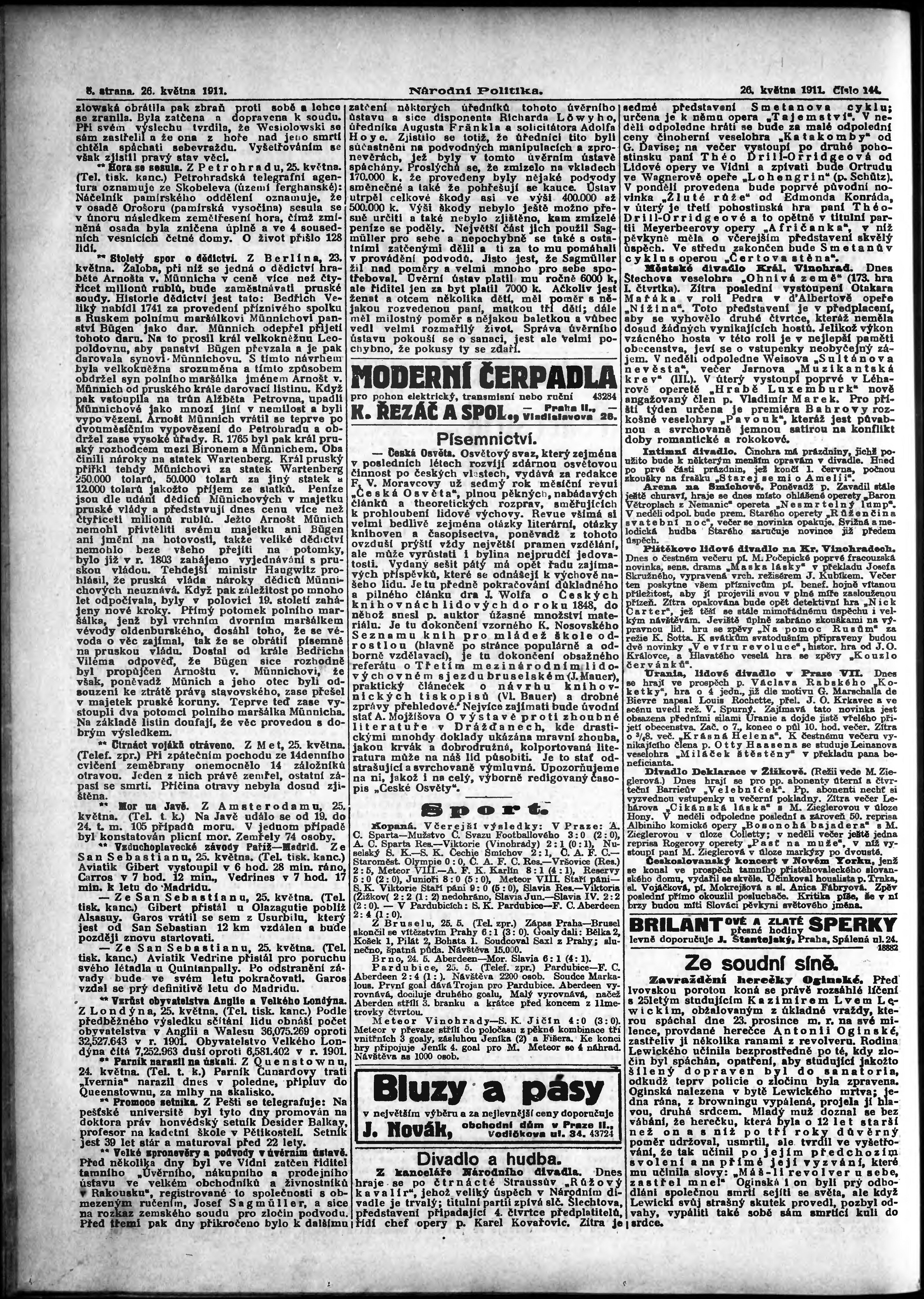 * Datum vydání výtisku: 26.5.1911 Číslo výtisku: 144 Poznámky k výtisku: ranní vydání;