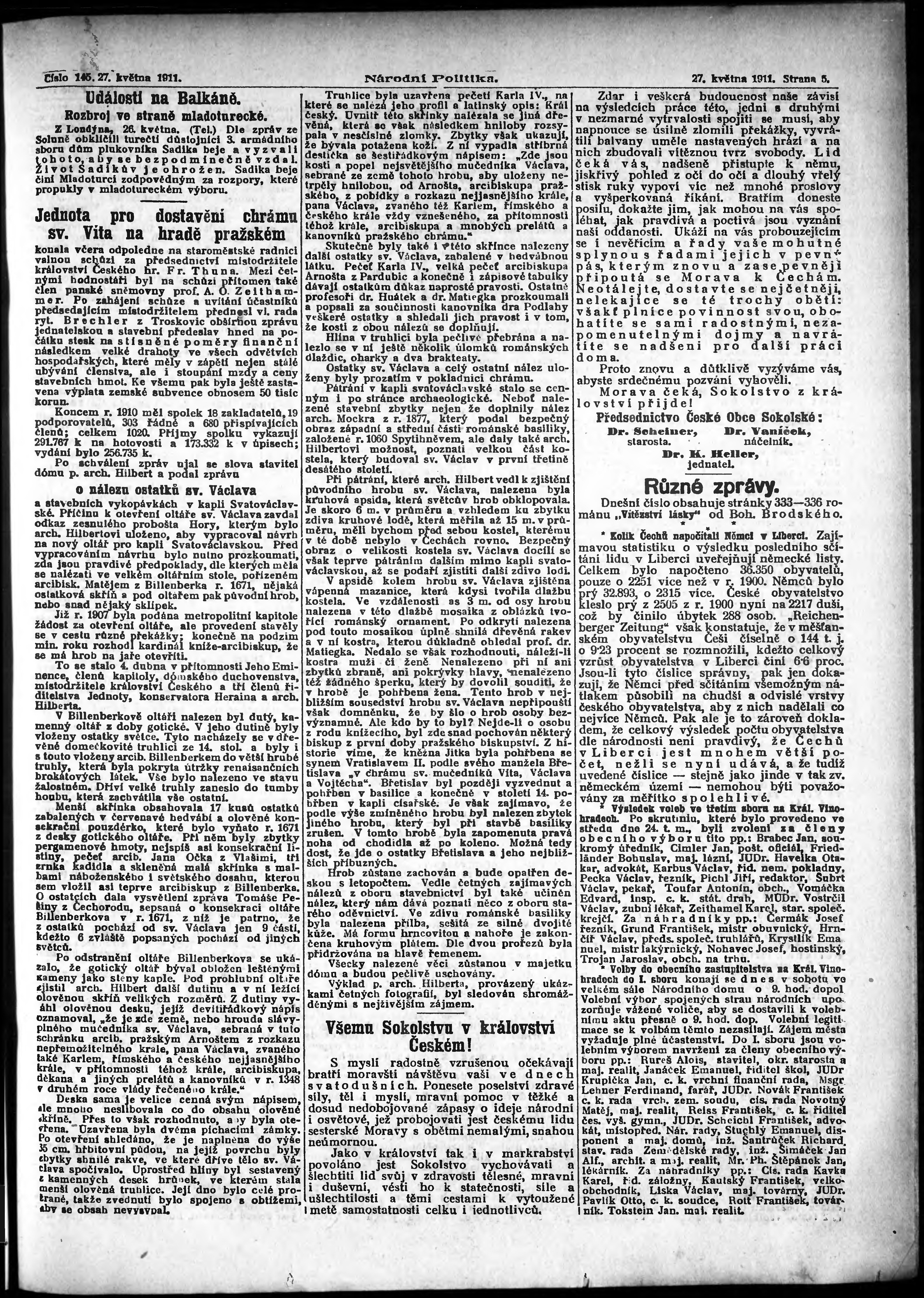 * Datum vydání výtisku: 27.5.1911 Číslo výtisku: 145 Poznámky k výtisku: ranní vydání;