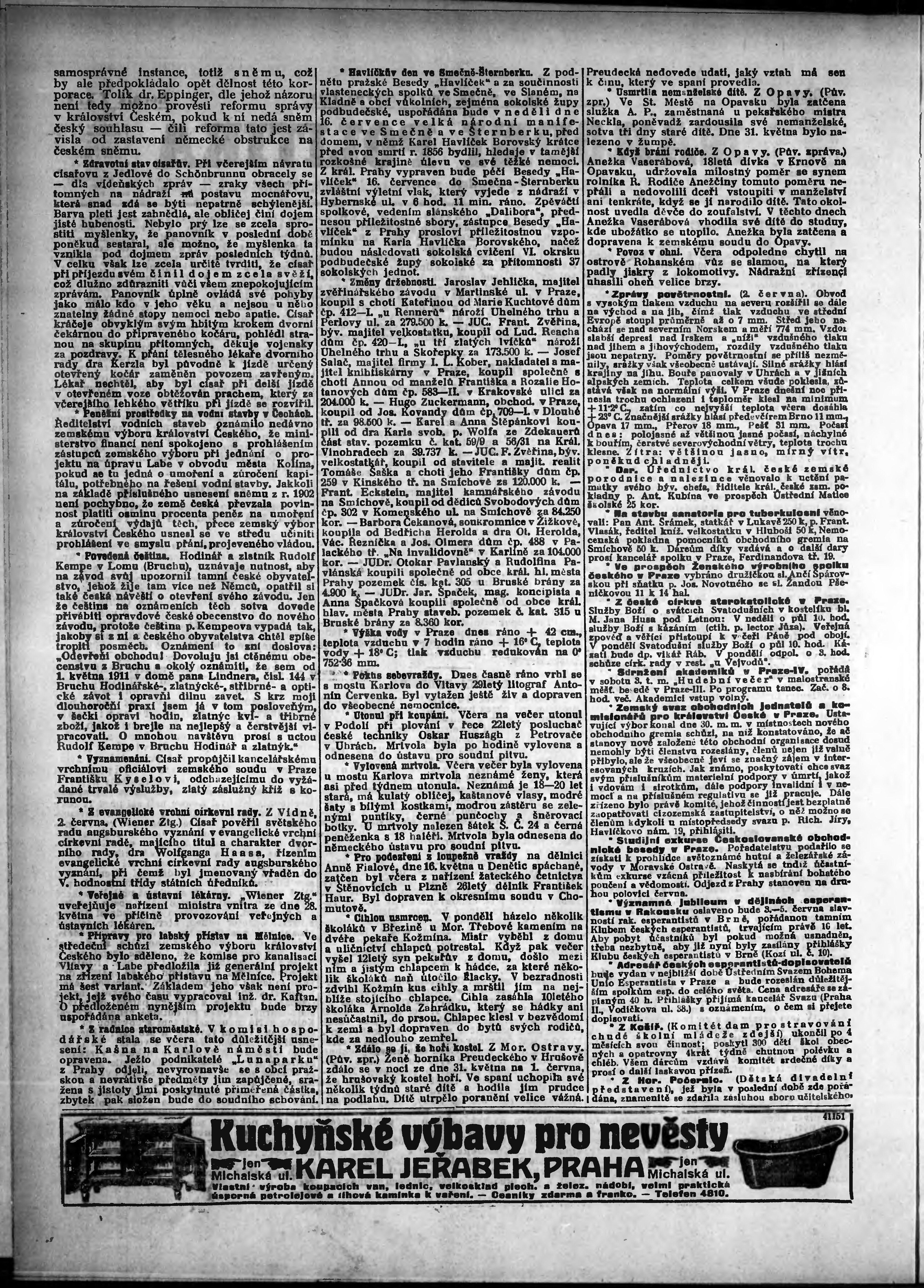 * Datum vydání výtisku: 2.6.1911 Číslo výtisku: 151 Poznámky k výtisku: odpolední vydání;