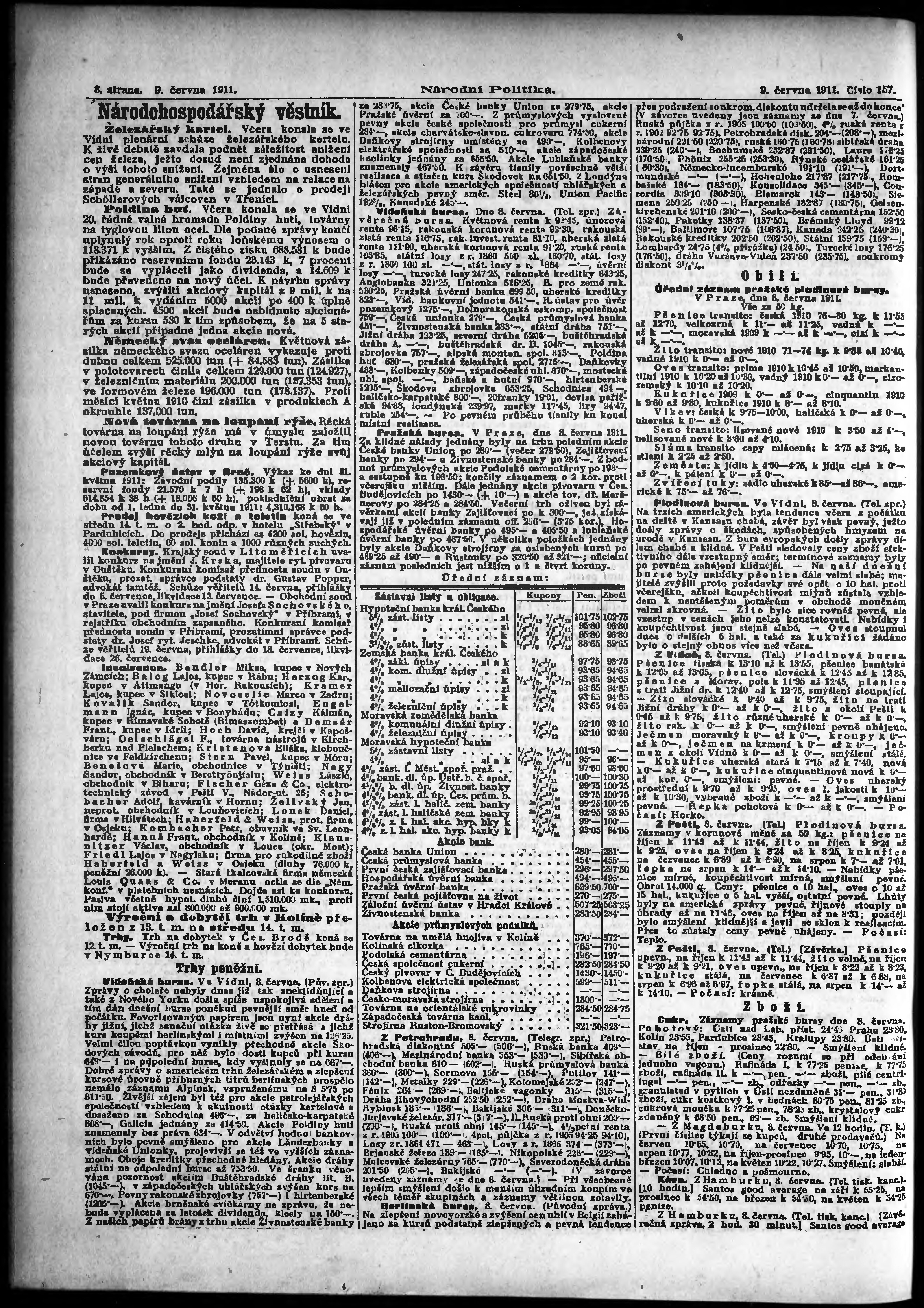 * Datum vydání výtisku: 9.6.1911 Číslo výtisku: 157 Poznámky k výtisku: ranní vydání;
