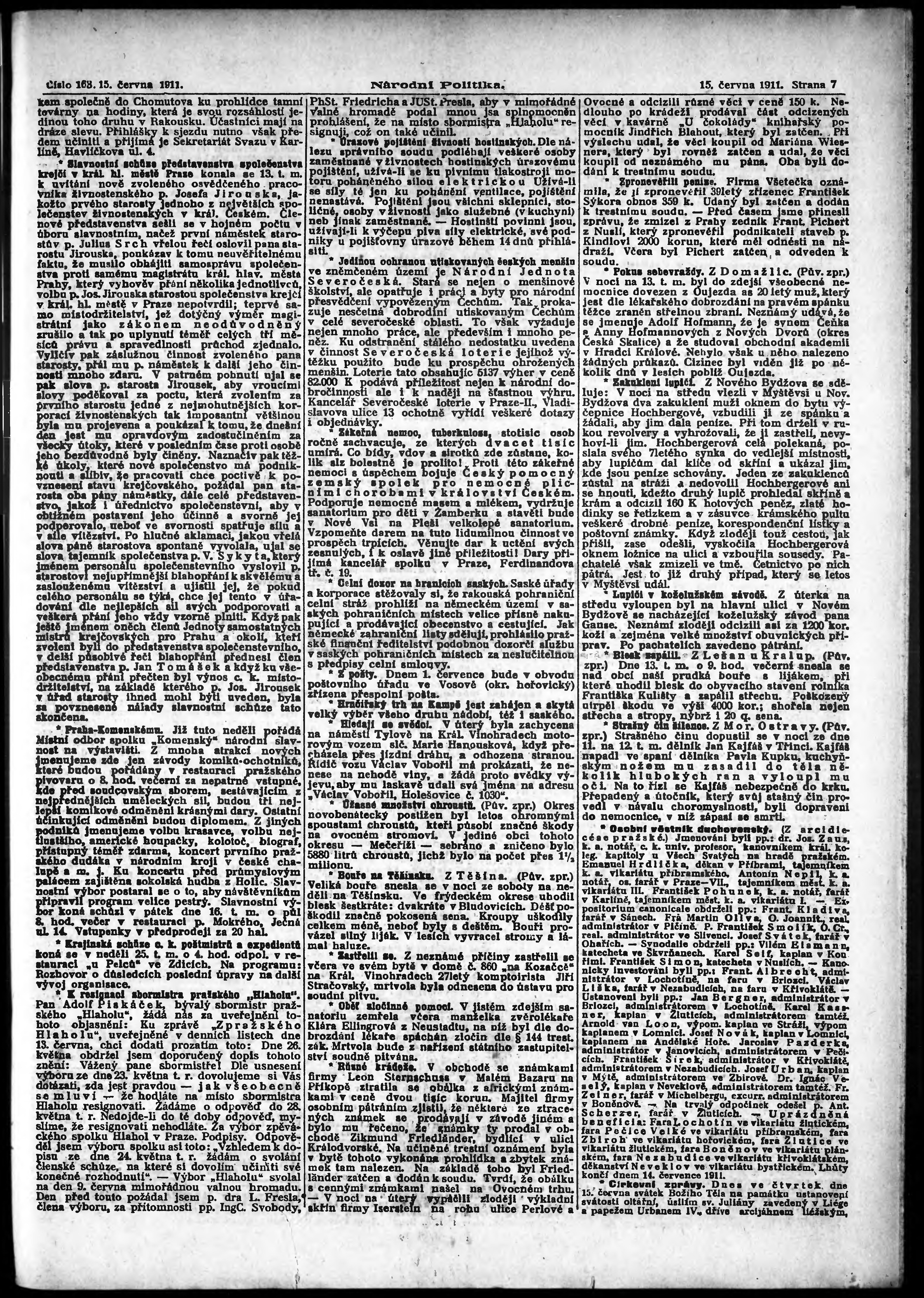 * Datum vydání výtisku: 15.6.1911 Číslo výtisku: 163 Poznámky k výtisku: ranní vydání;