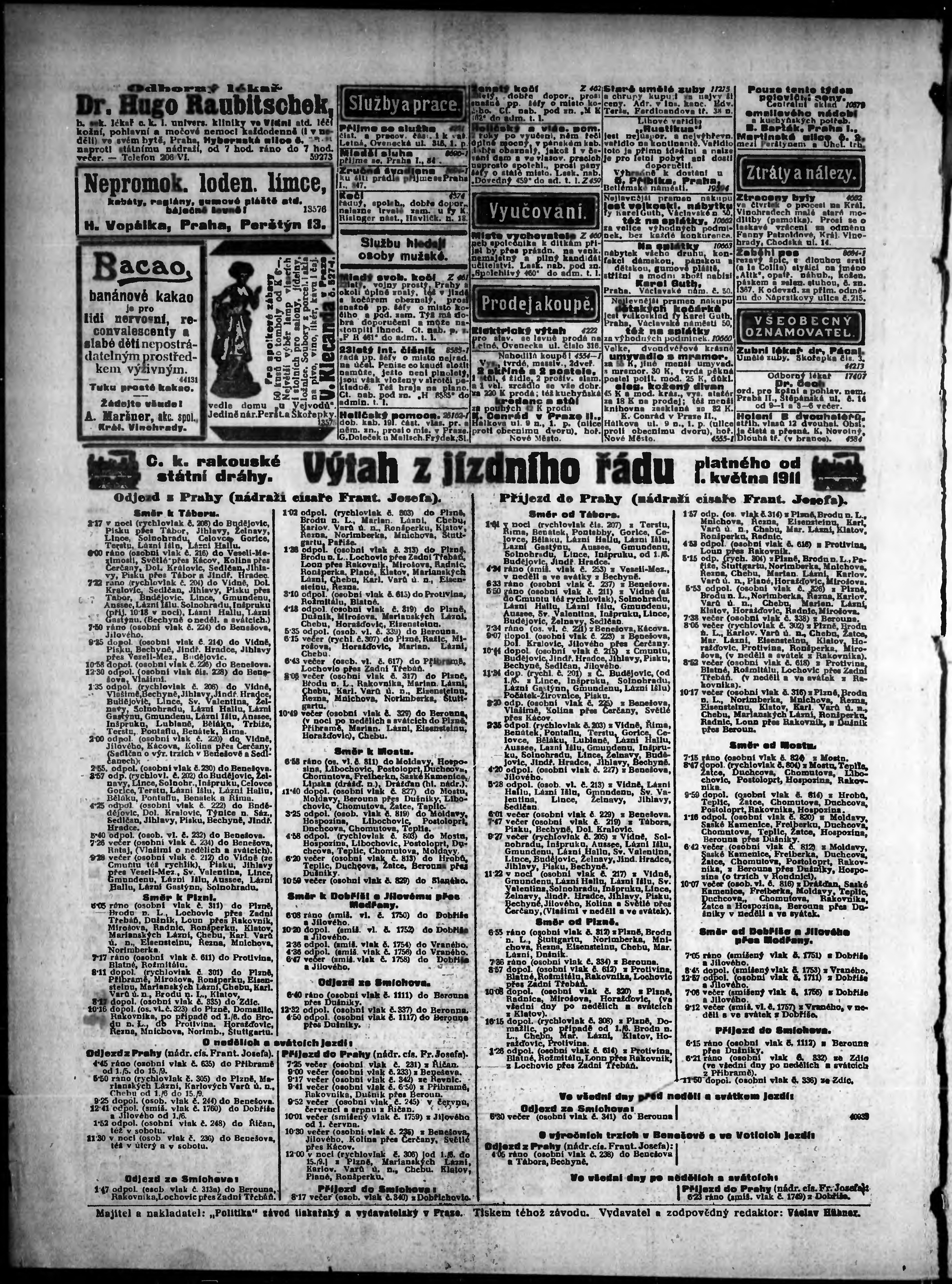 * Datum vydání výtisku: 16.6.1911 Číslo výtisku: 164 Poznámky k výtisku: odpolední vydání;