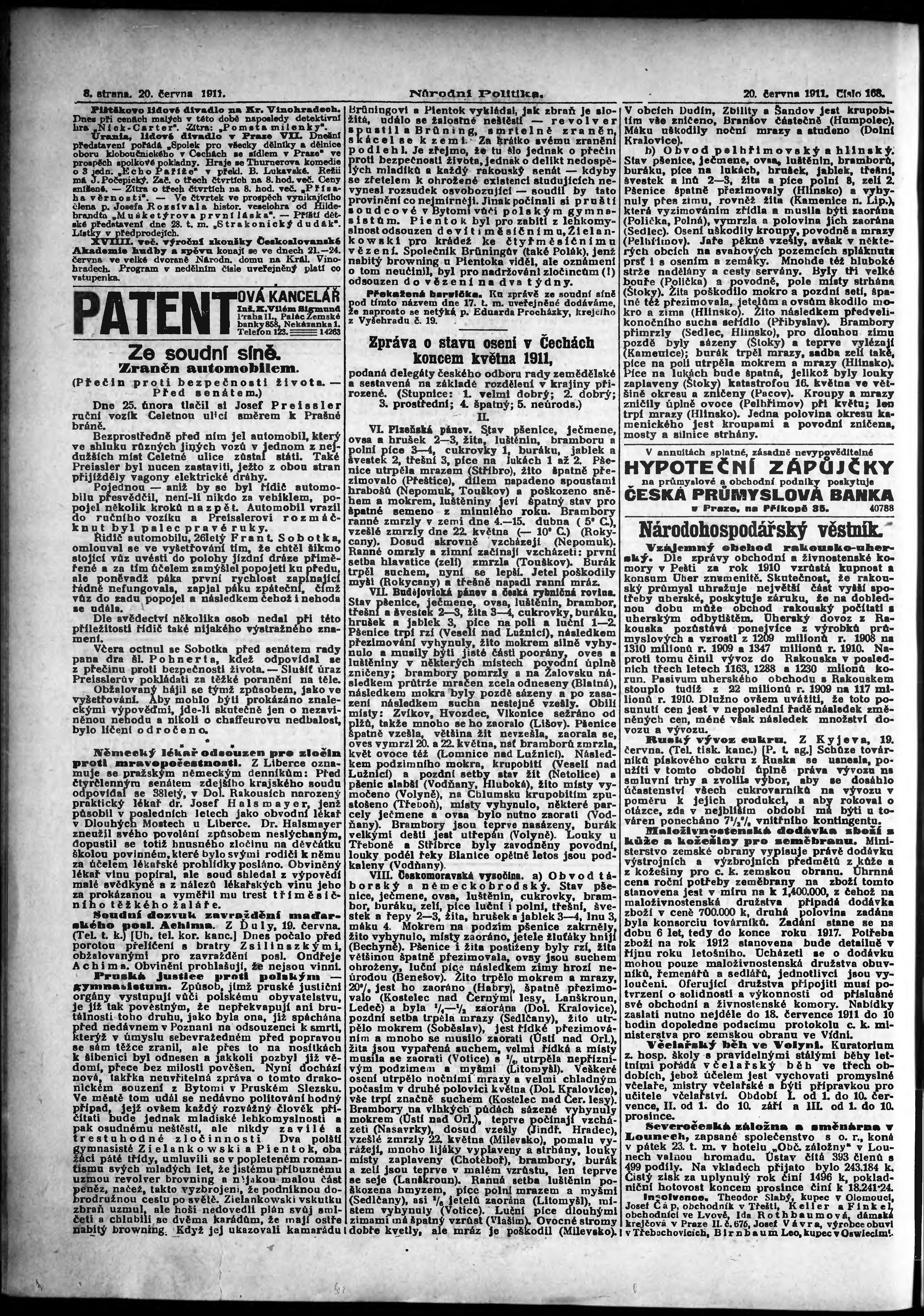 * Datum vydání výtisku: 20.6.1911 Číslo výtisku: 168 Poznámky k výtisku: ranní vydání;
