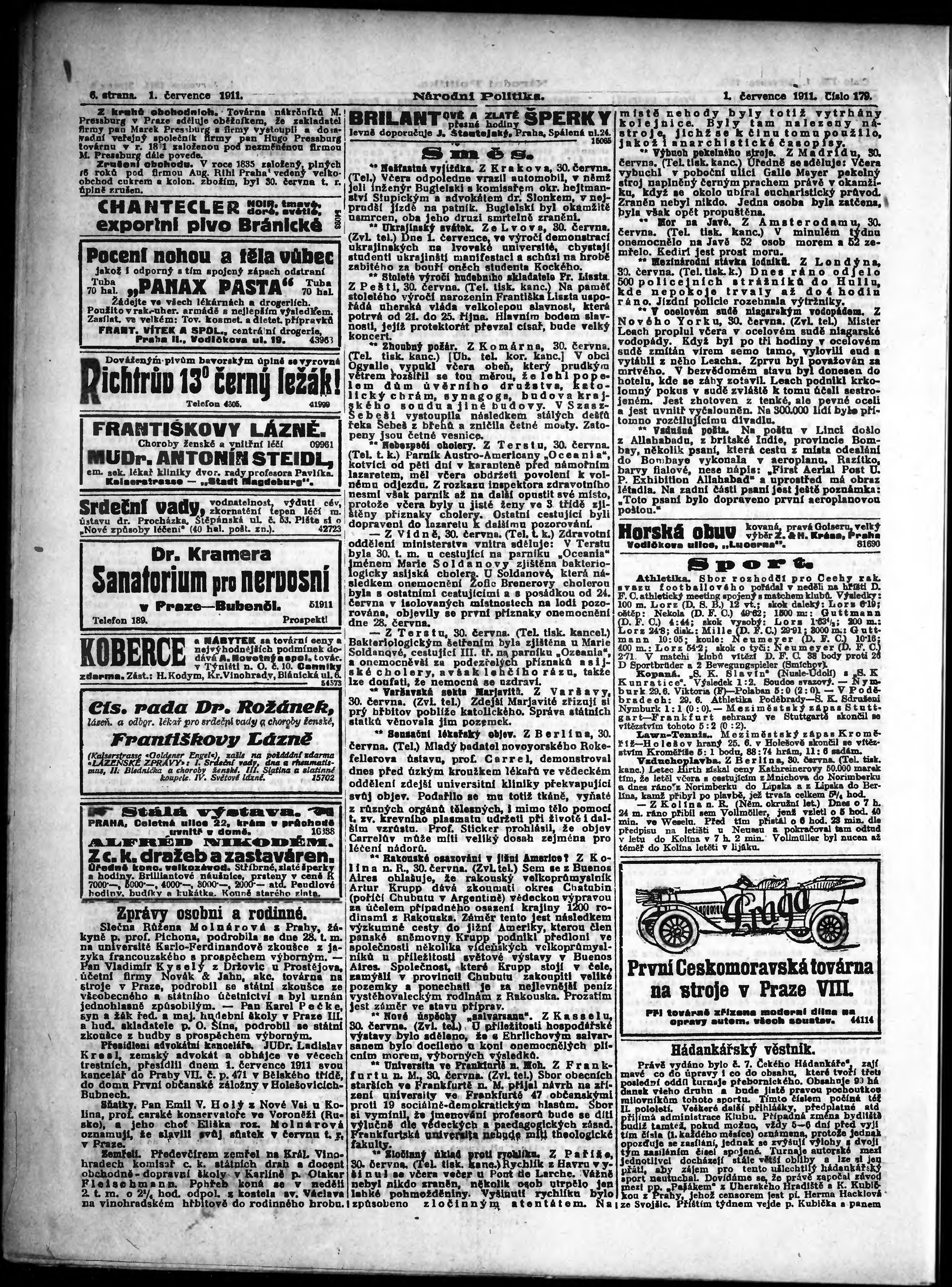 * Datum vydání výtisku: 1.7.1911 Číslo výtisku: 179 Poznámky k výtisku: ranní vydání;