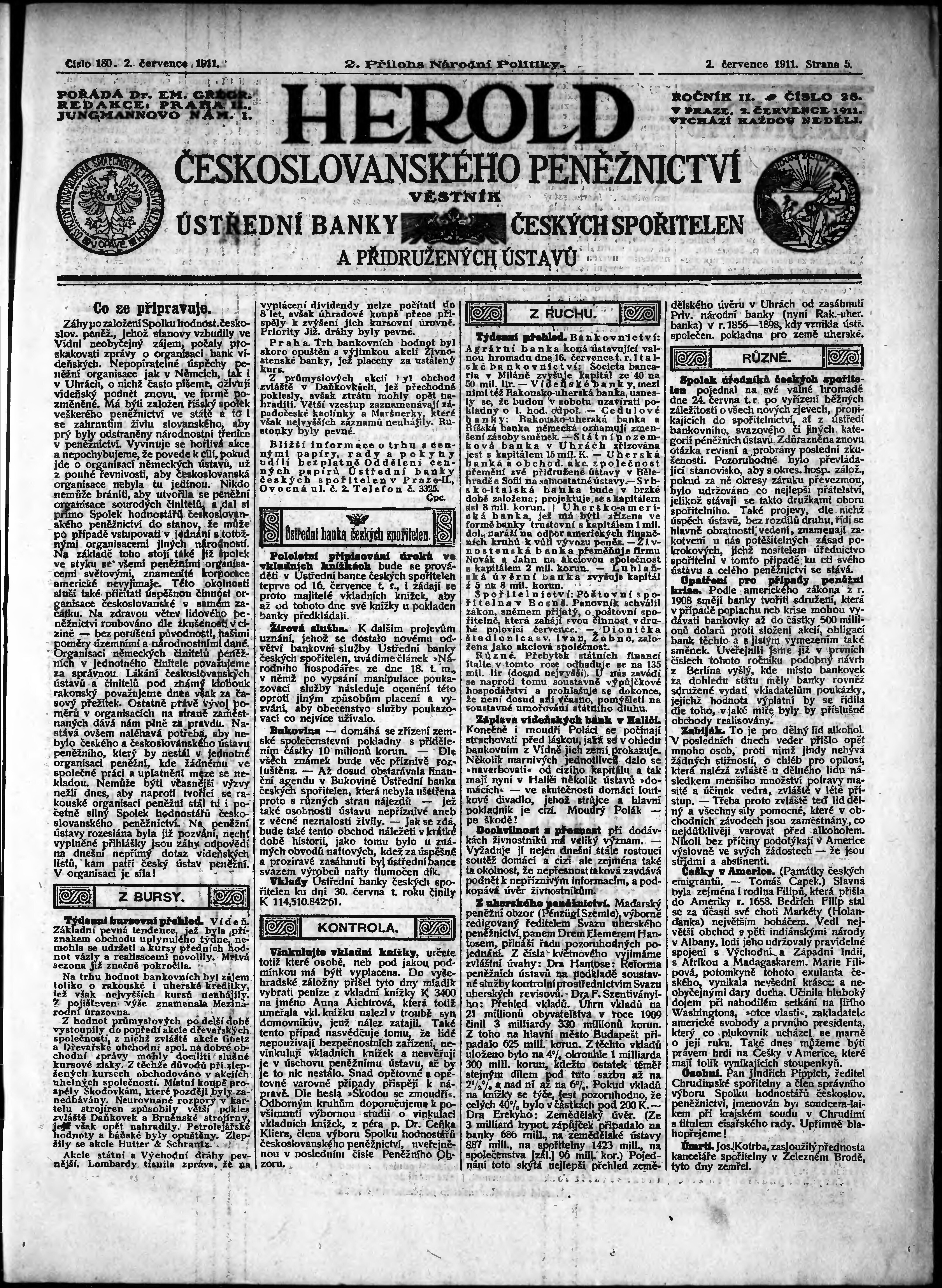Poznámky k výtisku: 2. příloha; obsahuje č. 28 Herold českoslovanského peněžnictví;
