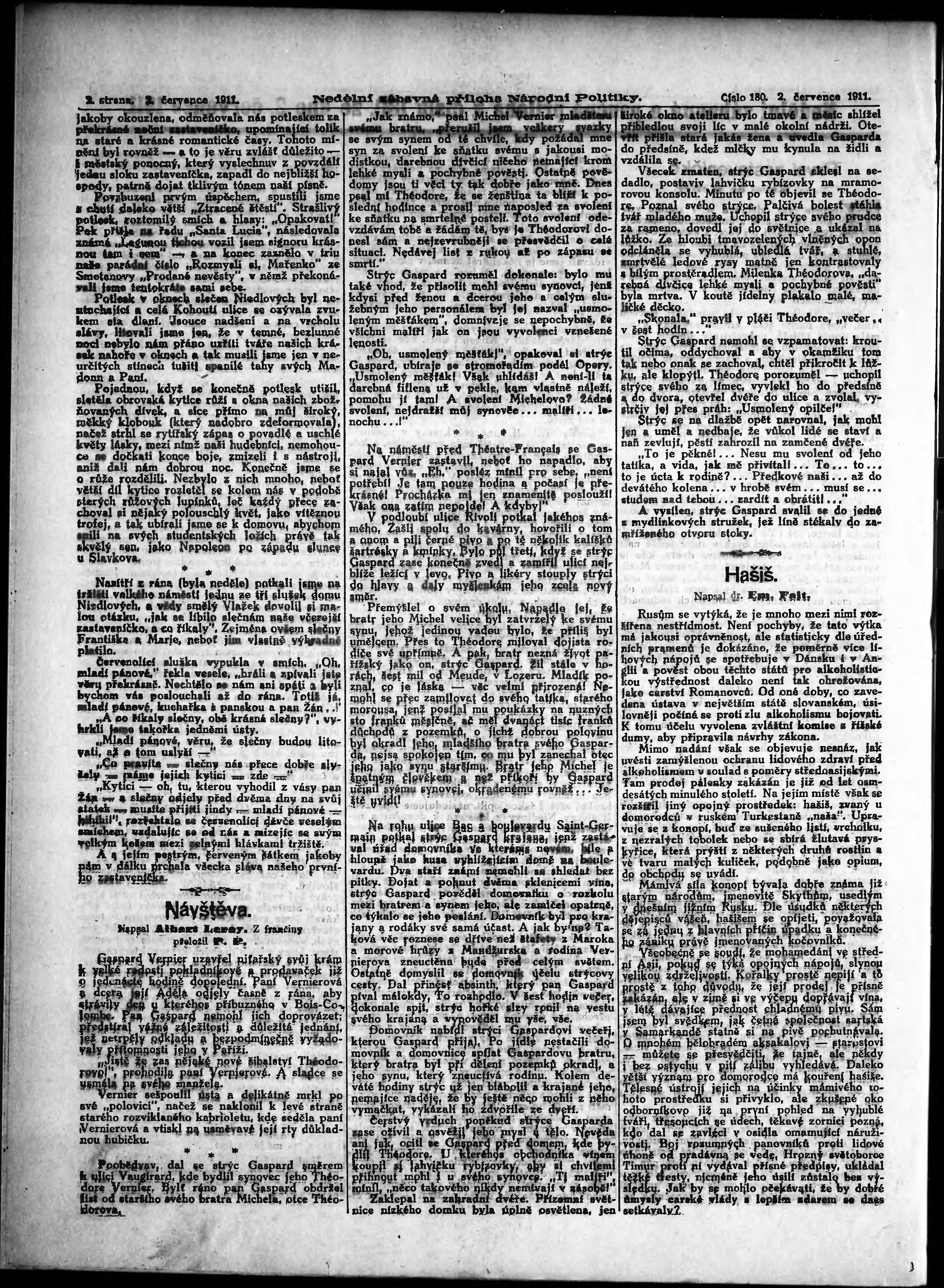 * Datum vydání výtisku: 2.7.1911 Číslo výtisku: 180 Typ výtisku: příloha