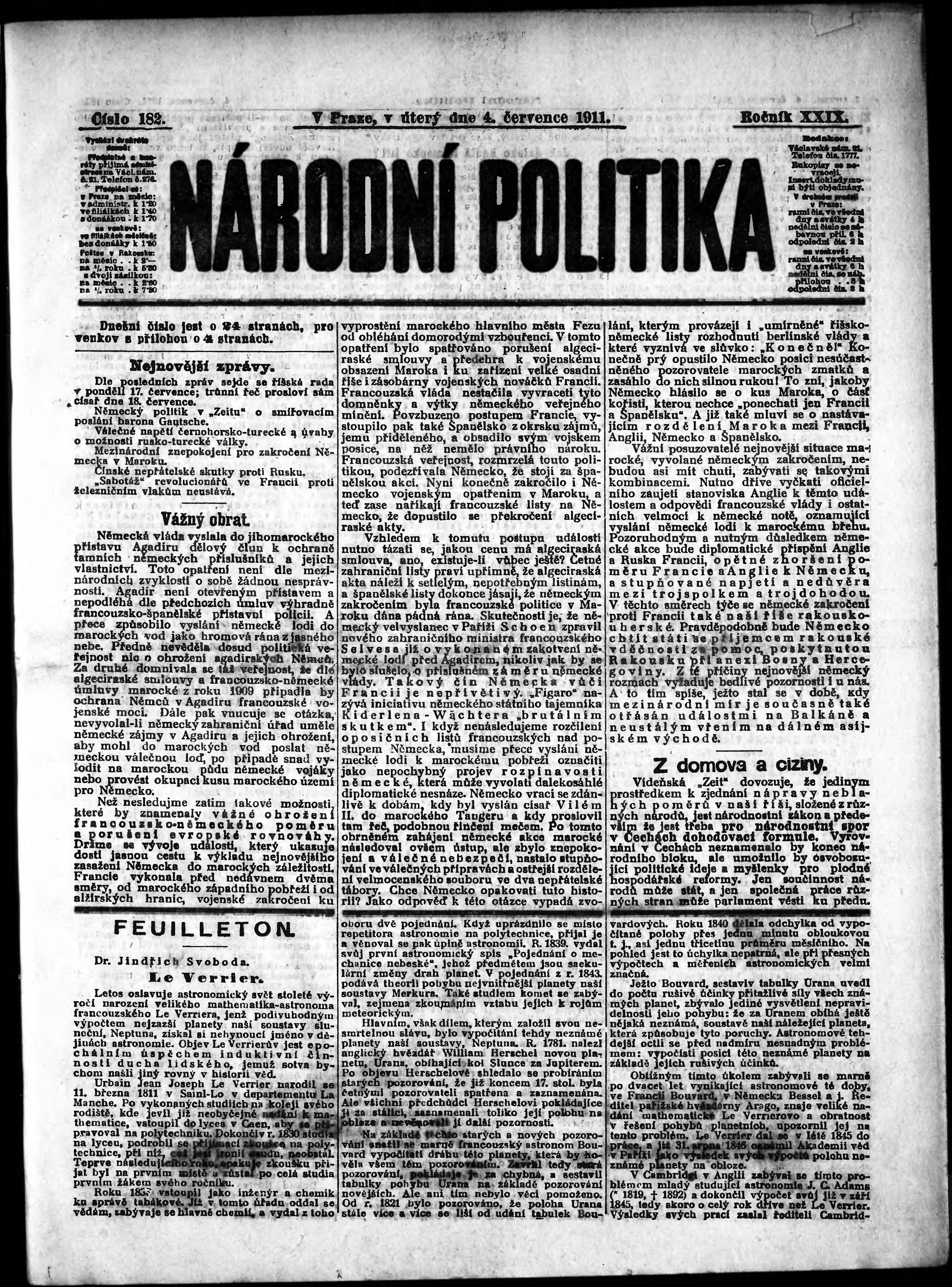 * Datum vydání výtisku: 4.7.1911 Číslo výtisku: 182 Poznámky k výtisku: ranní vydání;