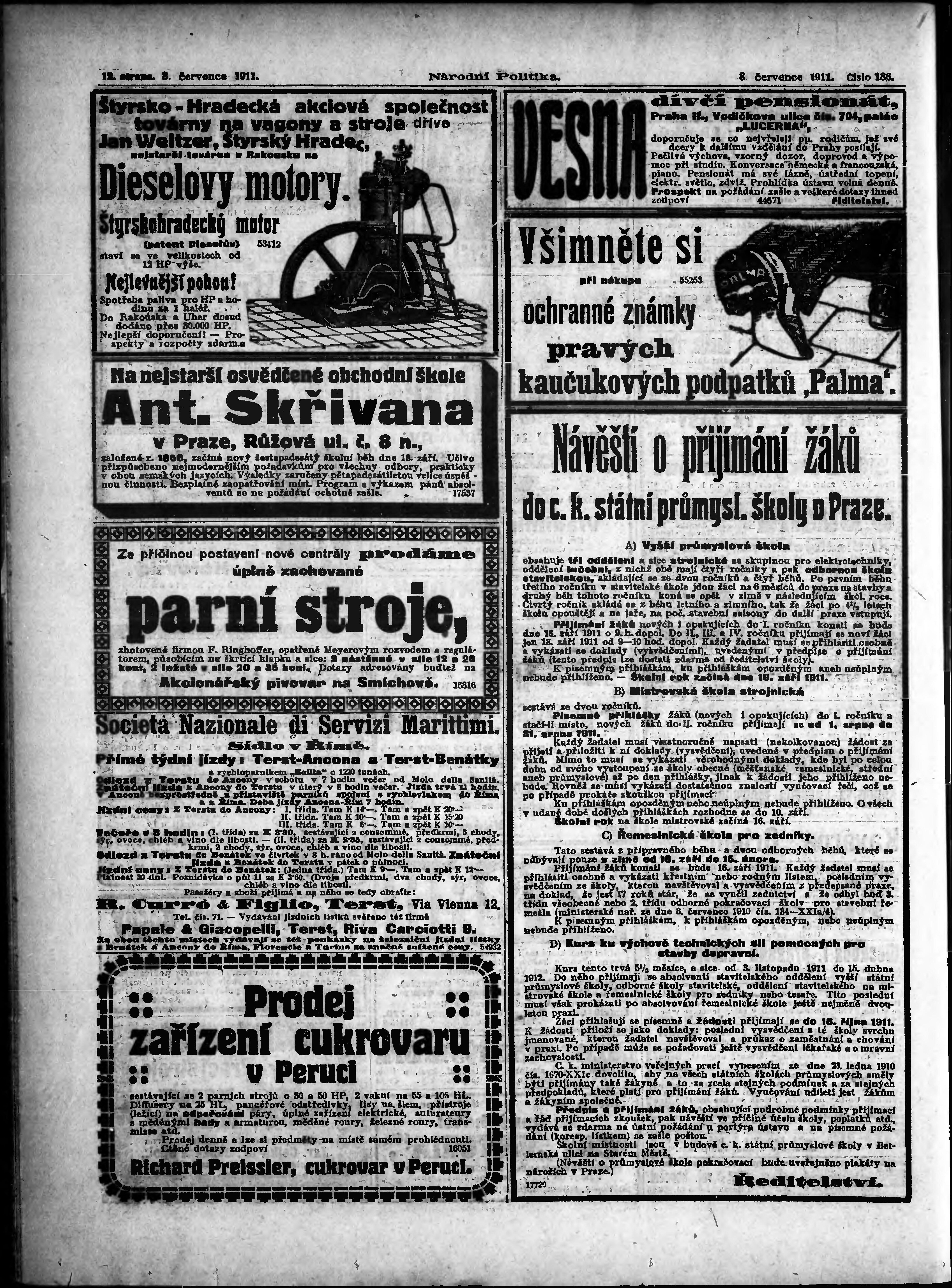 * Datum vydání výtisku: 8.7.1911 Číslo výtisku: 186 Poznámky k výtisku: ranní vydání;