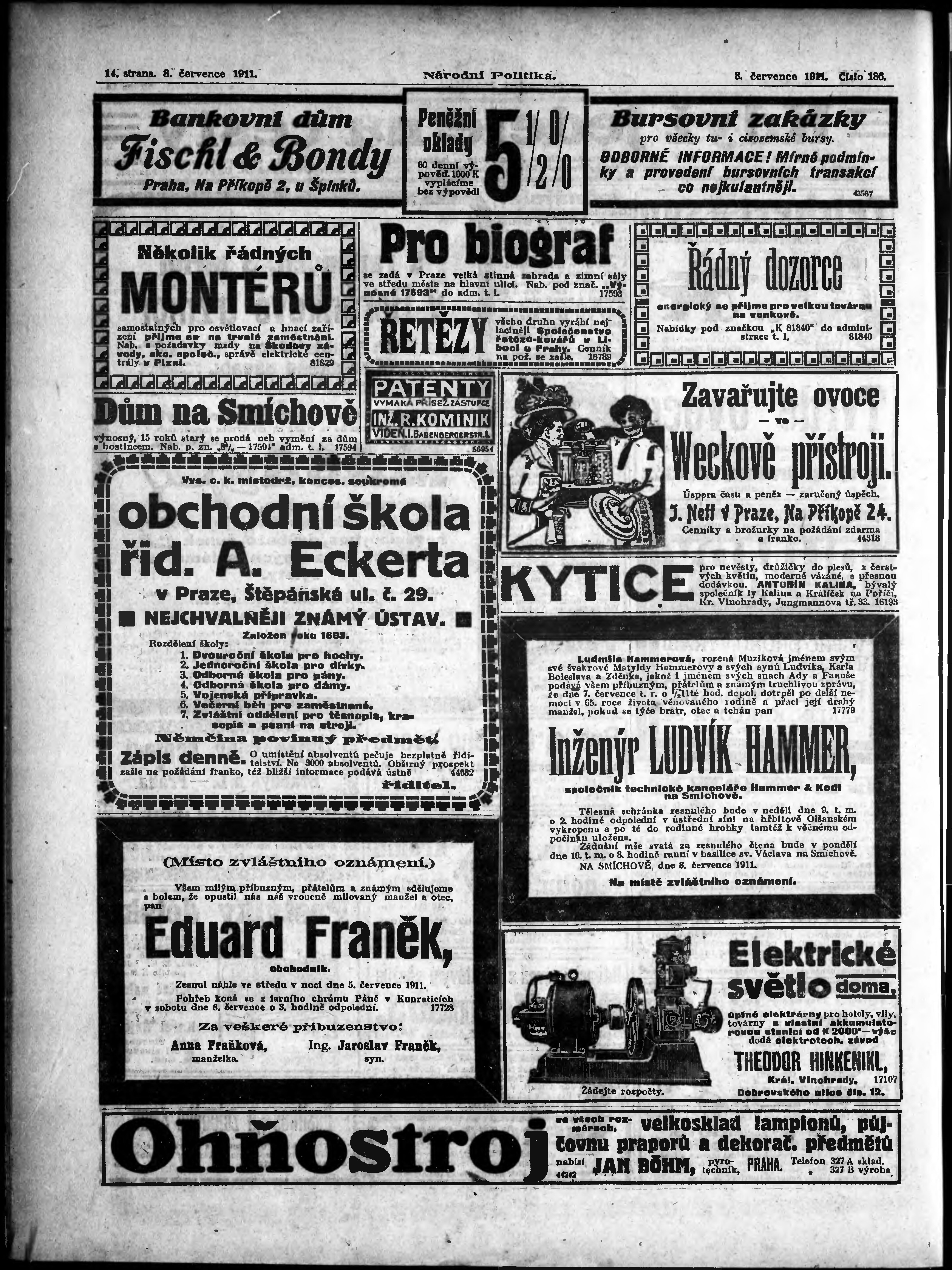 * Datum vydání výtisku: 8.7.1911 Číslo výtisku: 186 Poznámky k výtisku: ranní vydání;