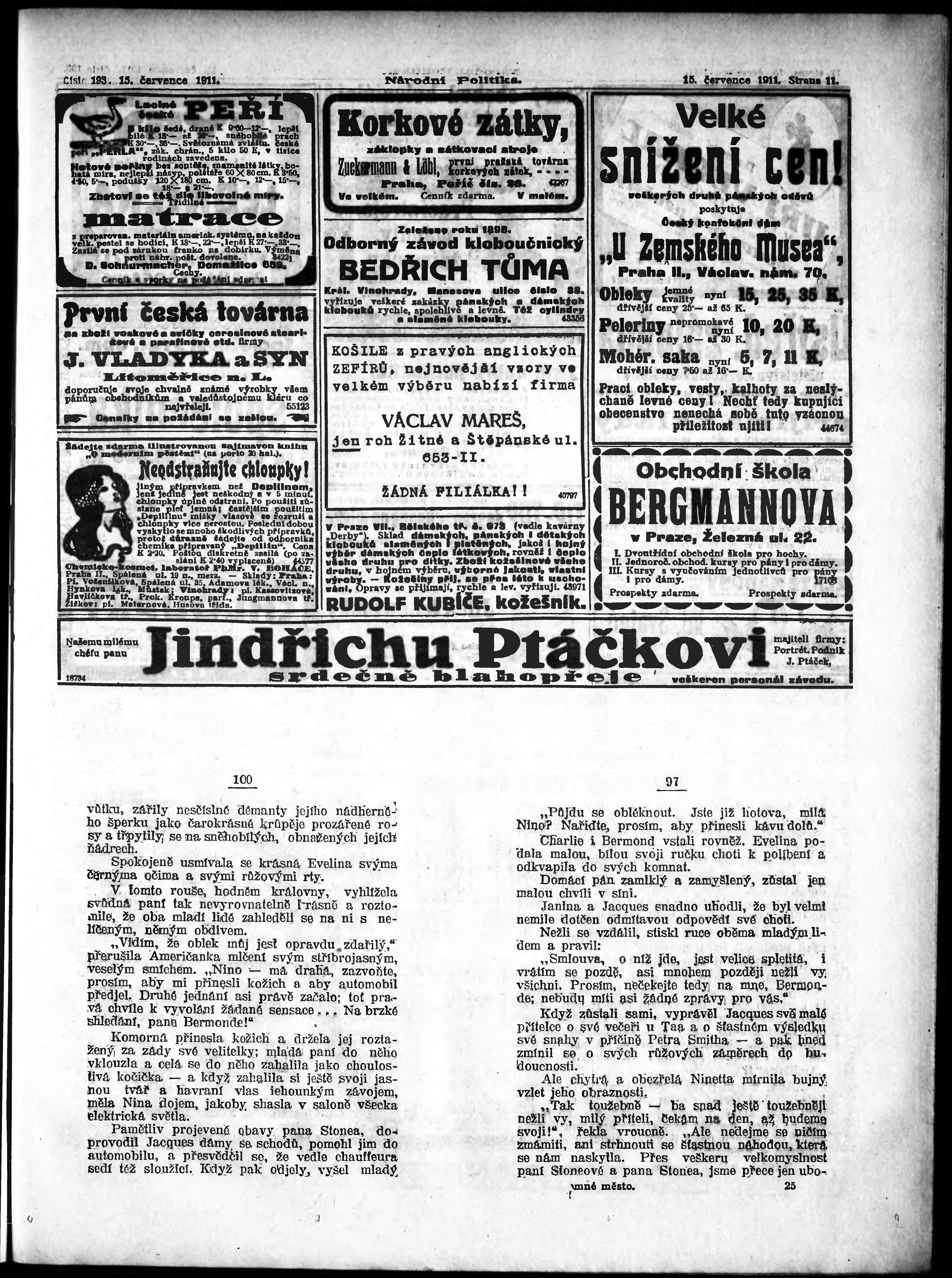 * Datum vydání výtisku: 15.7.1911 Číslo výtisku: 193 Poznámky k výtisku: ranní vydání;