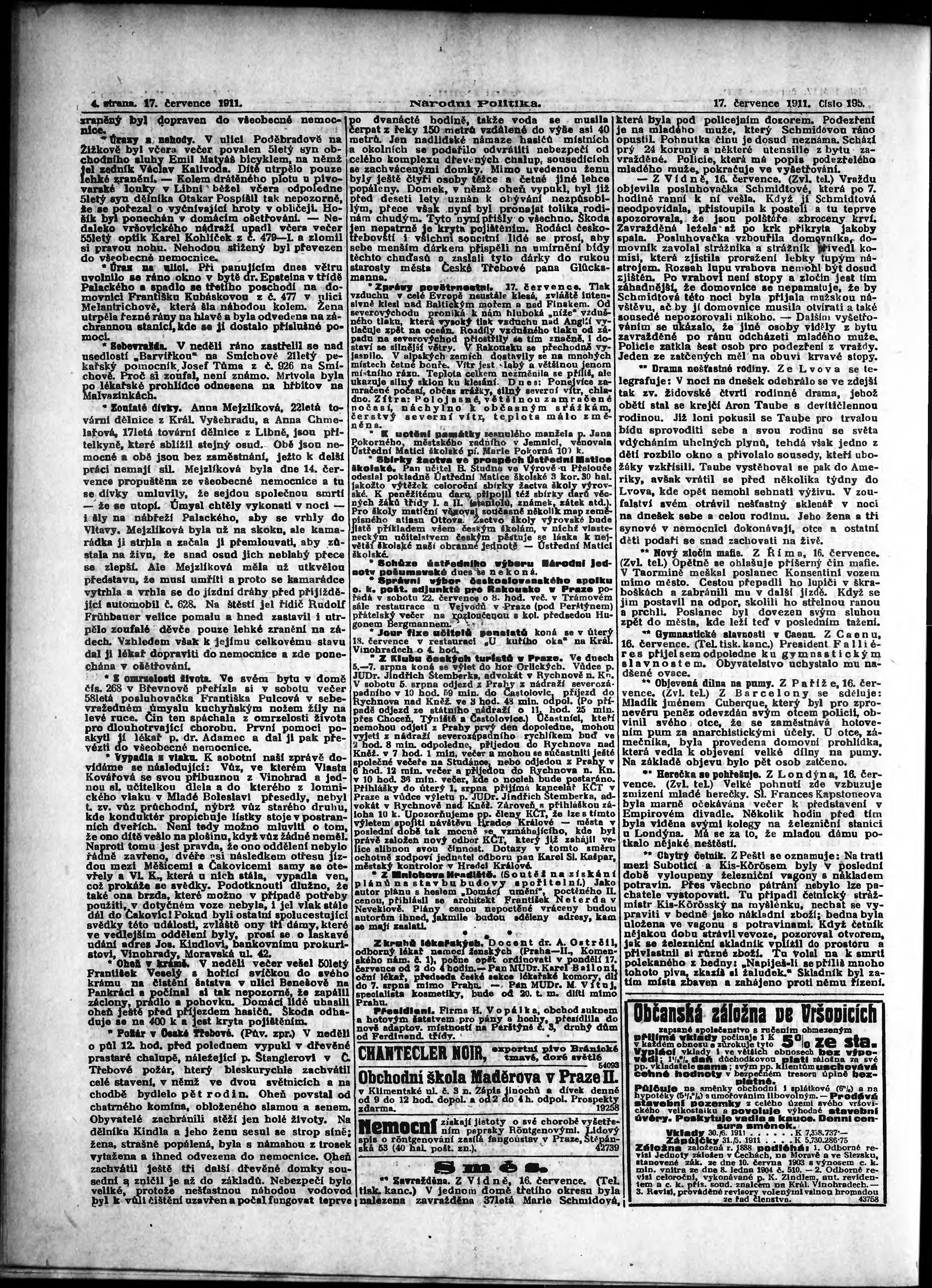 * Datum vydání výtisku: 17.7.1911 Číslo výtisku: 195 Poznámky k výtisku: ranní vydání;