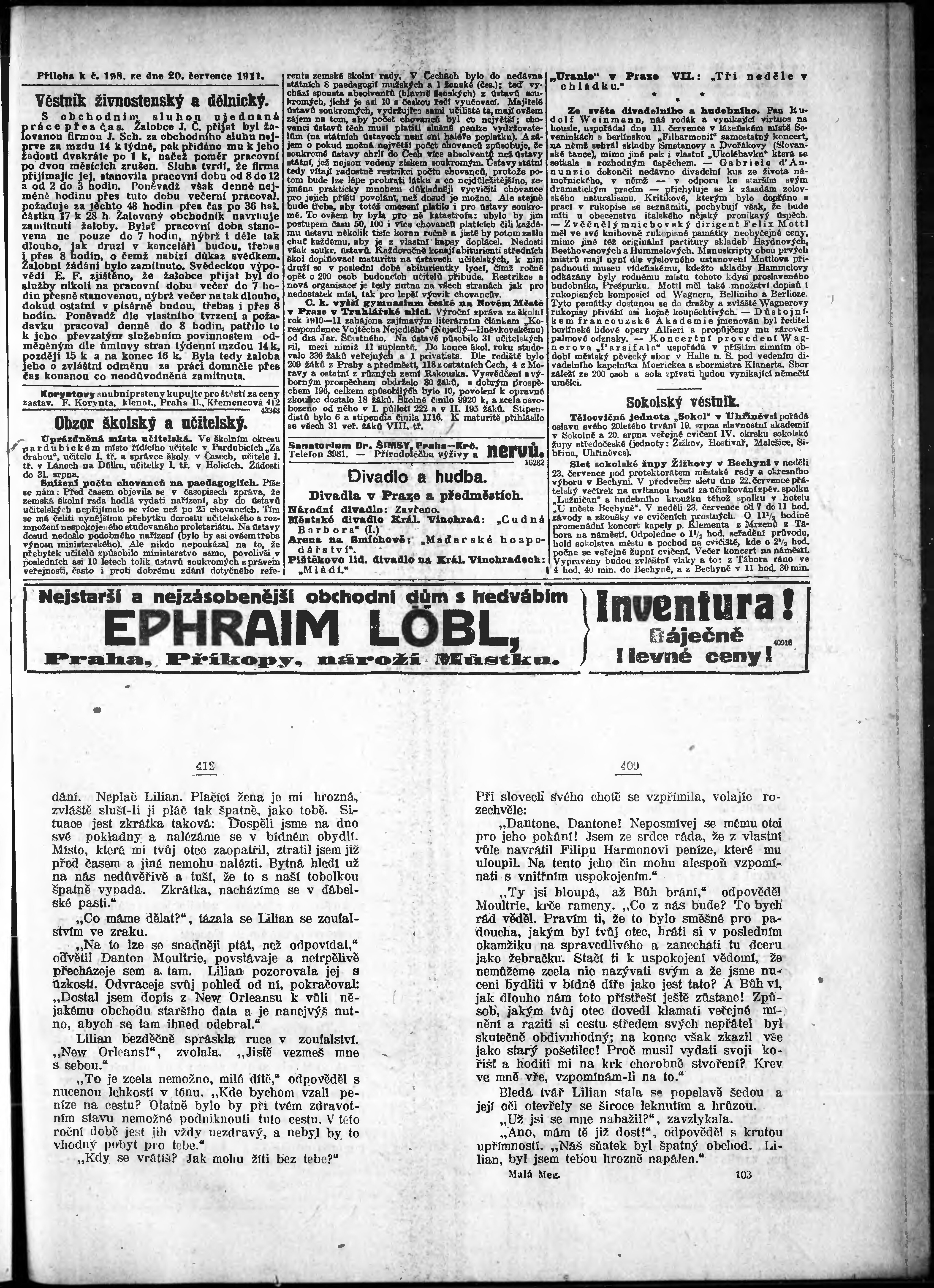 * Datum vydání výtisku: 20.7.1911 Číslo výtisku: 198 Poznámky k výtisku: odpolední vydání;