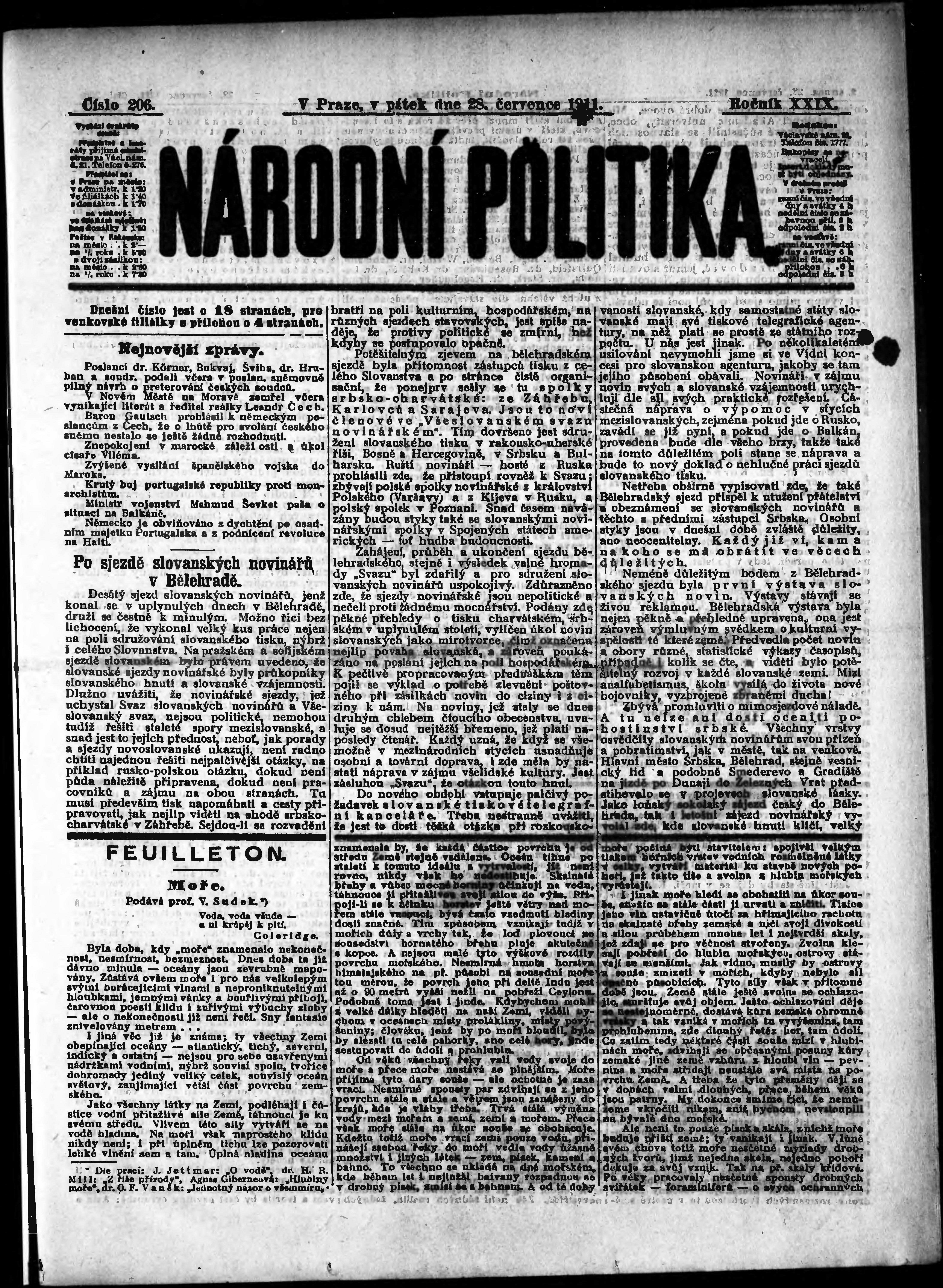* Datum vydání výtisku: 28.7.1911 Číslo výtisku: 206 Poznámky k výtisku: ranní vydání;