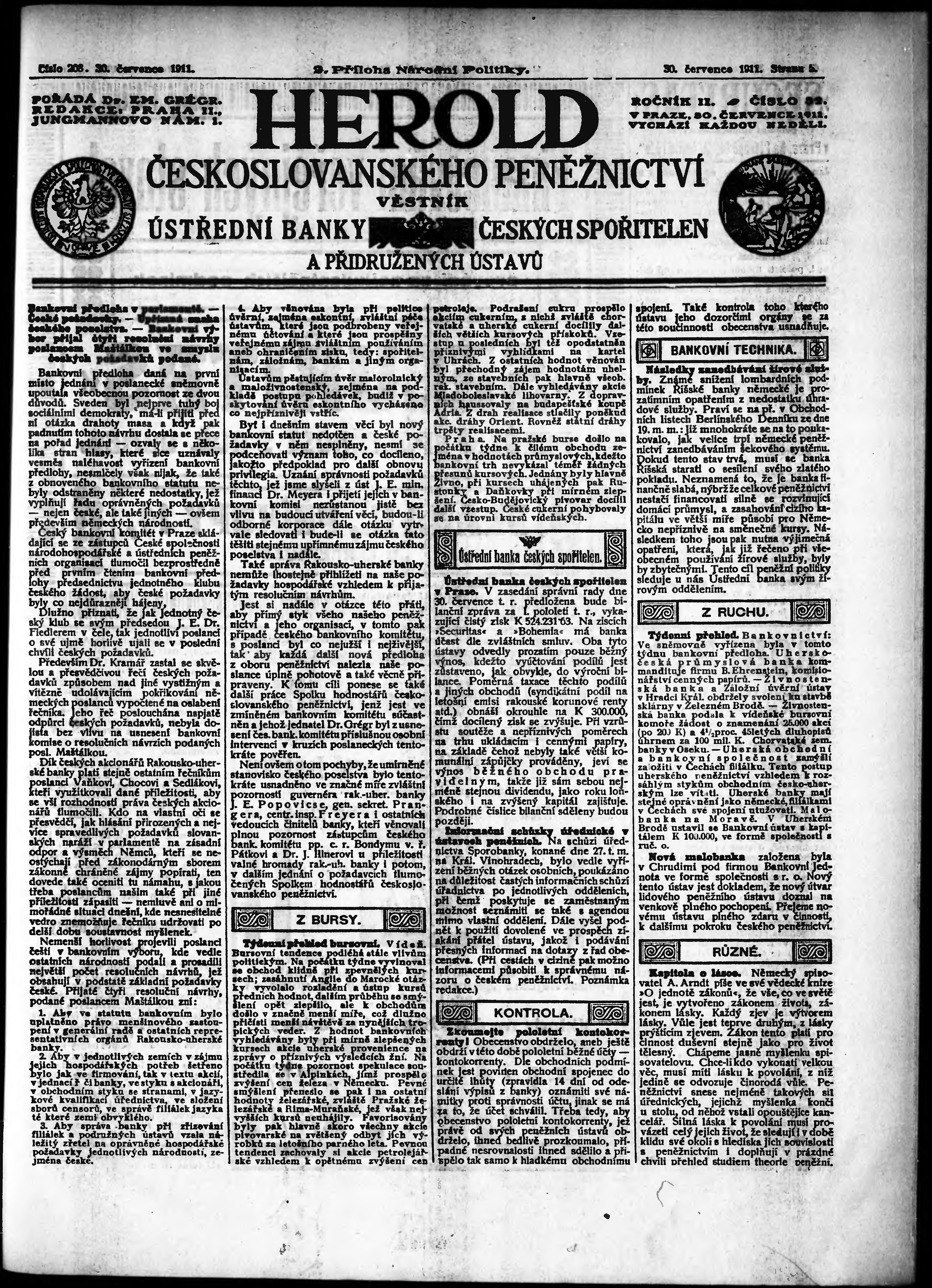 Poznámky k výtisku: 2. příloha; obsehuje č. 32 Herold českoslovanského peněžnictví;