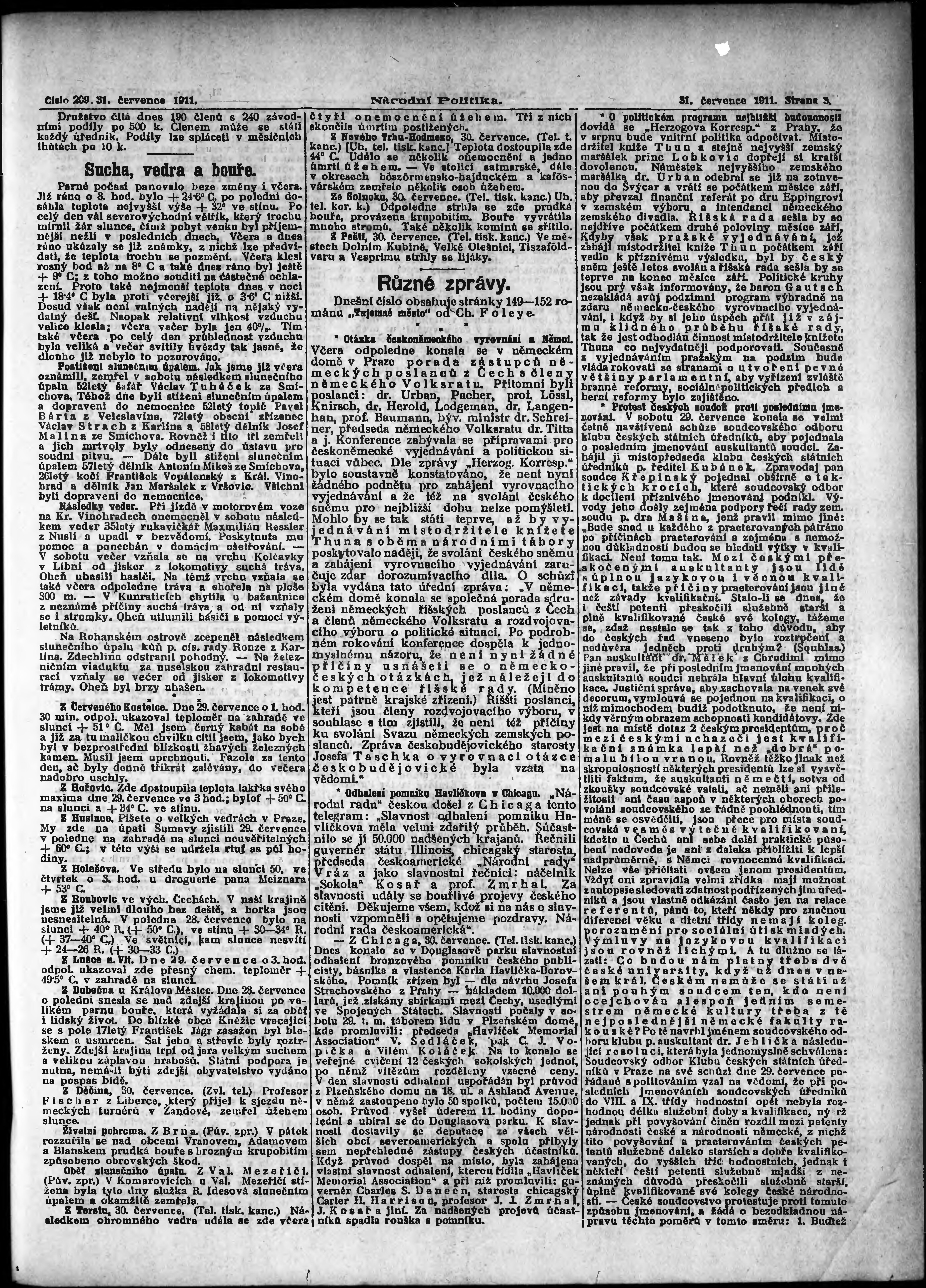 * Datum vydání výtisku: 31.7.1911 Číslo výtisku: 209 Poznámky k výtisku: ranní vydání;