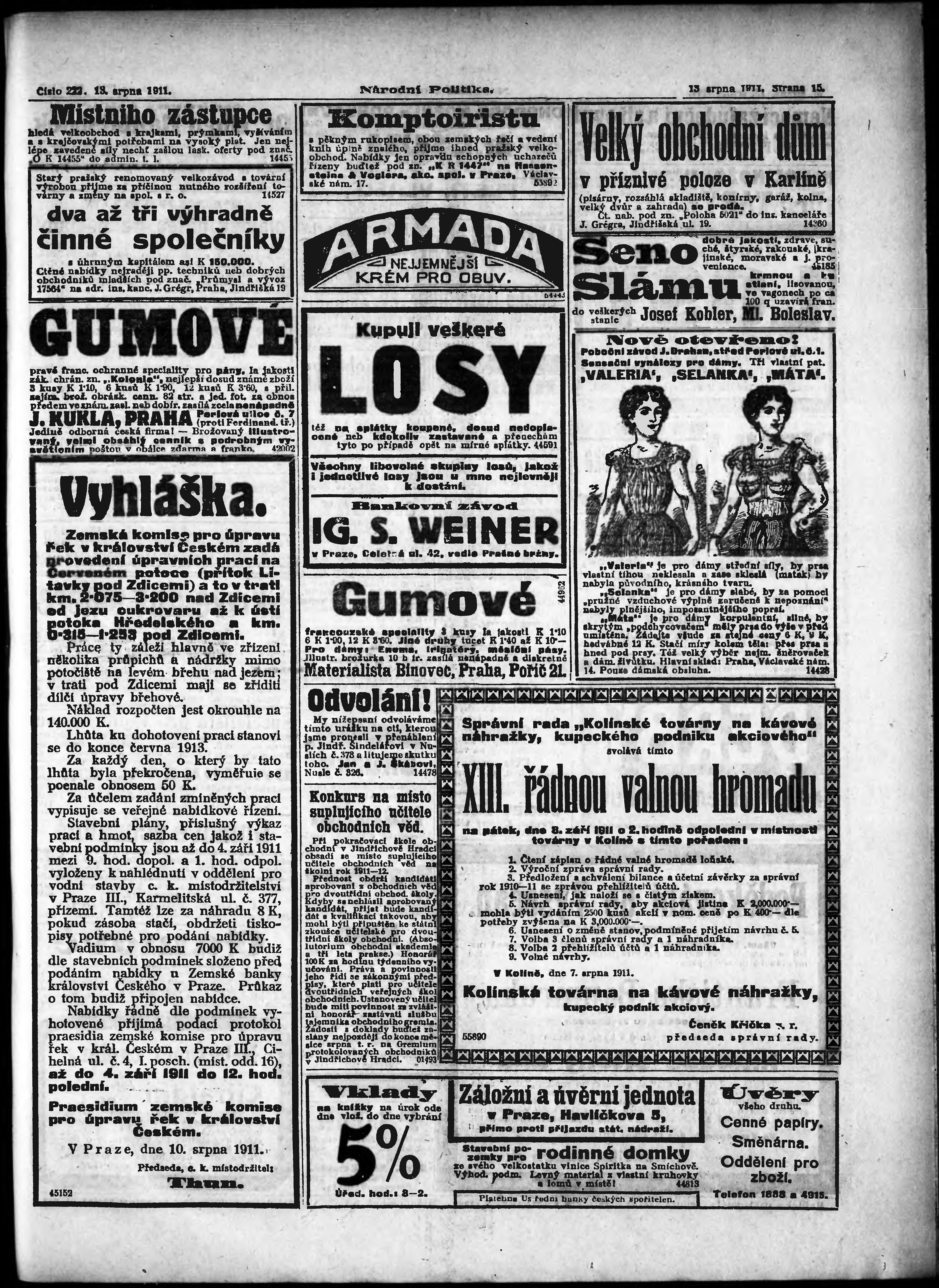 * Datum vydání výtisku: 13.8.1911 Číslo výtisku: 222 Poznámky k výtisku: ranní vydání;