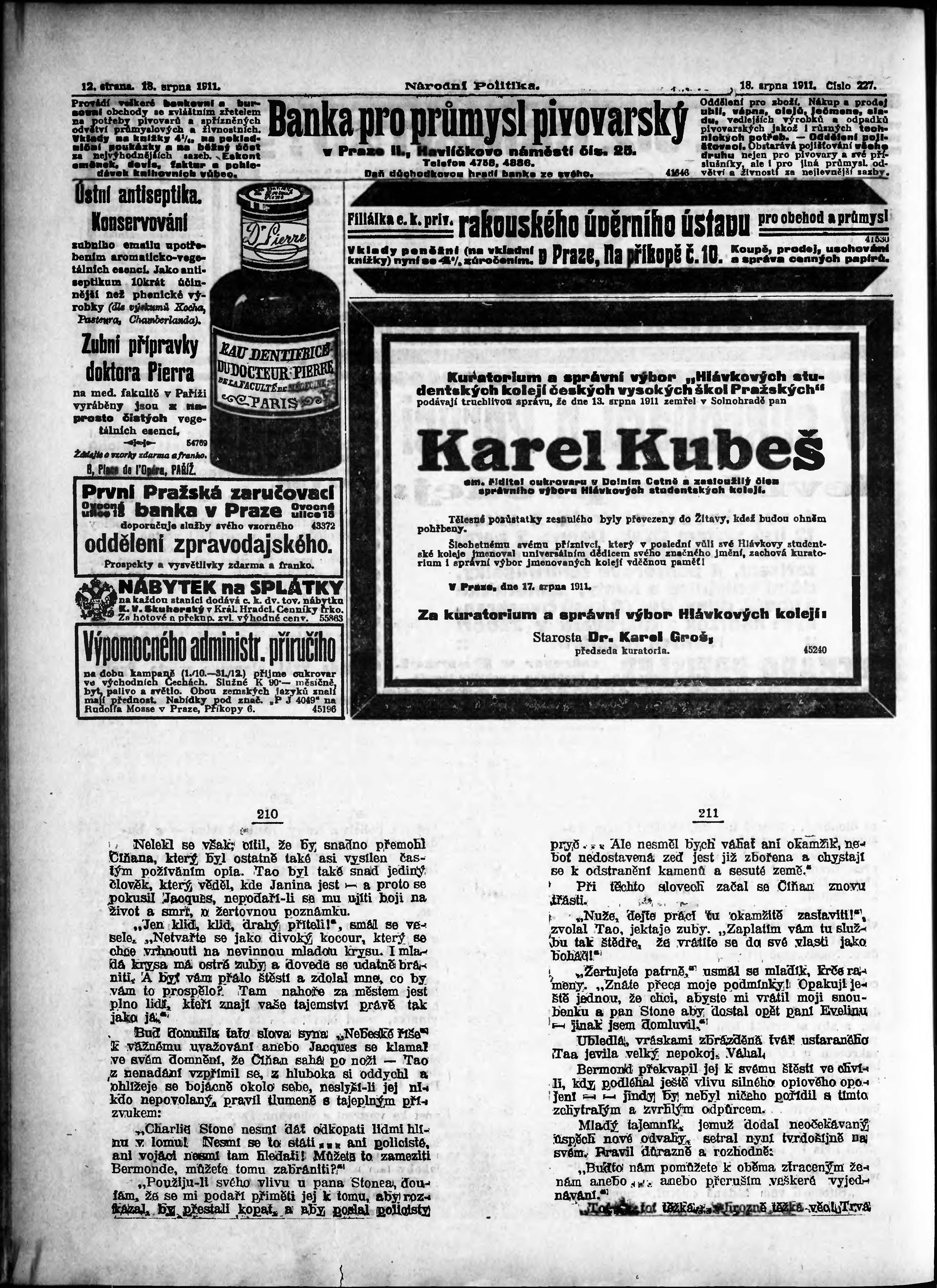* Datum vydání výtisku: 18.8.1911 Číslo výtisku: 227 Poznámky k výtisku: ranní vydání;