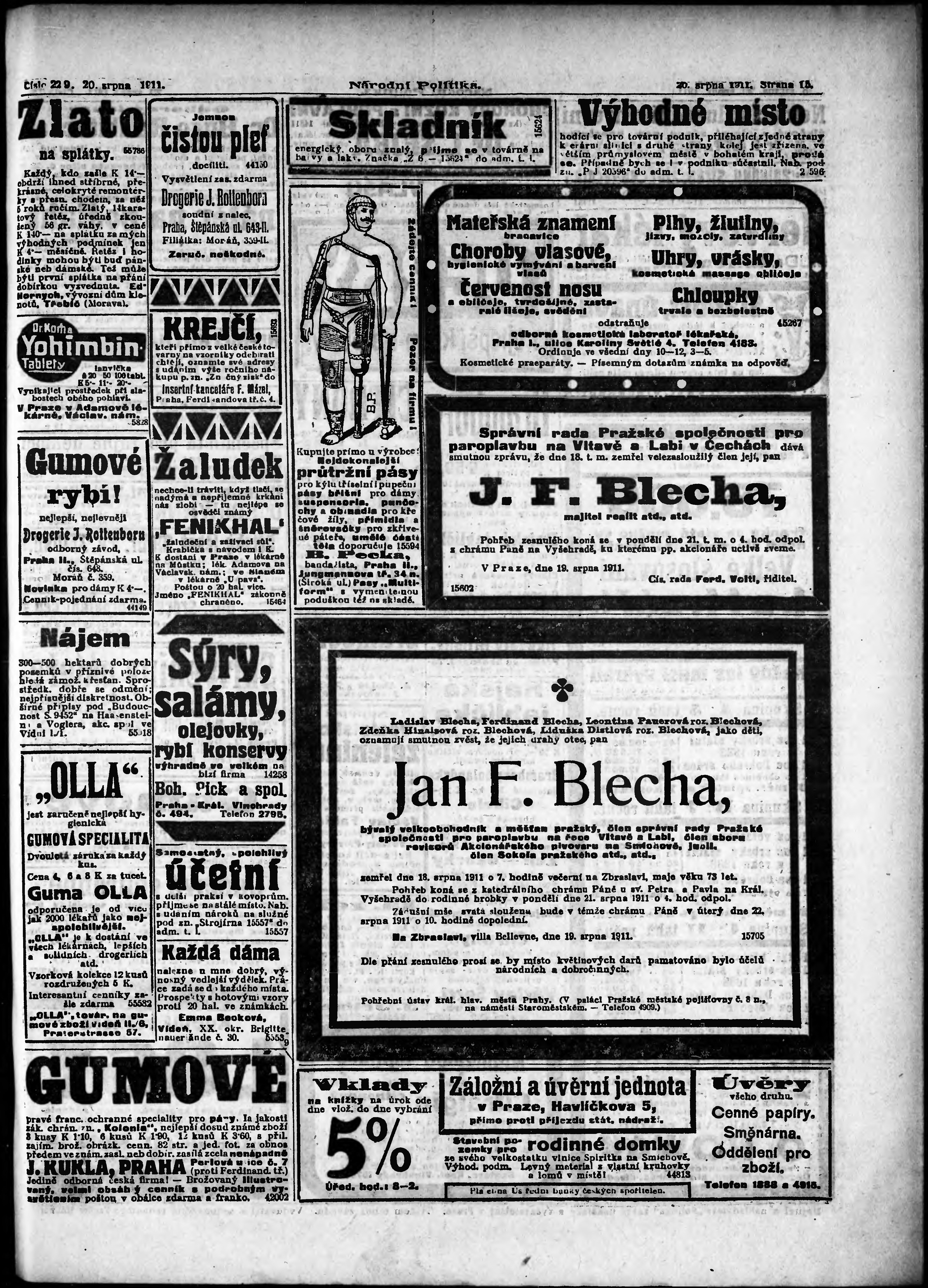 * Datum vydání výtisku: 20.8.1911 Číslo výtisku: 229 Poznámky k výtisku: ranní vydání;