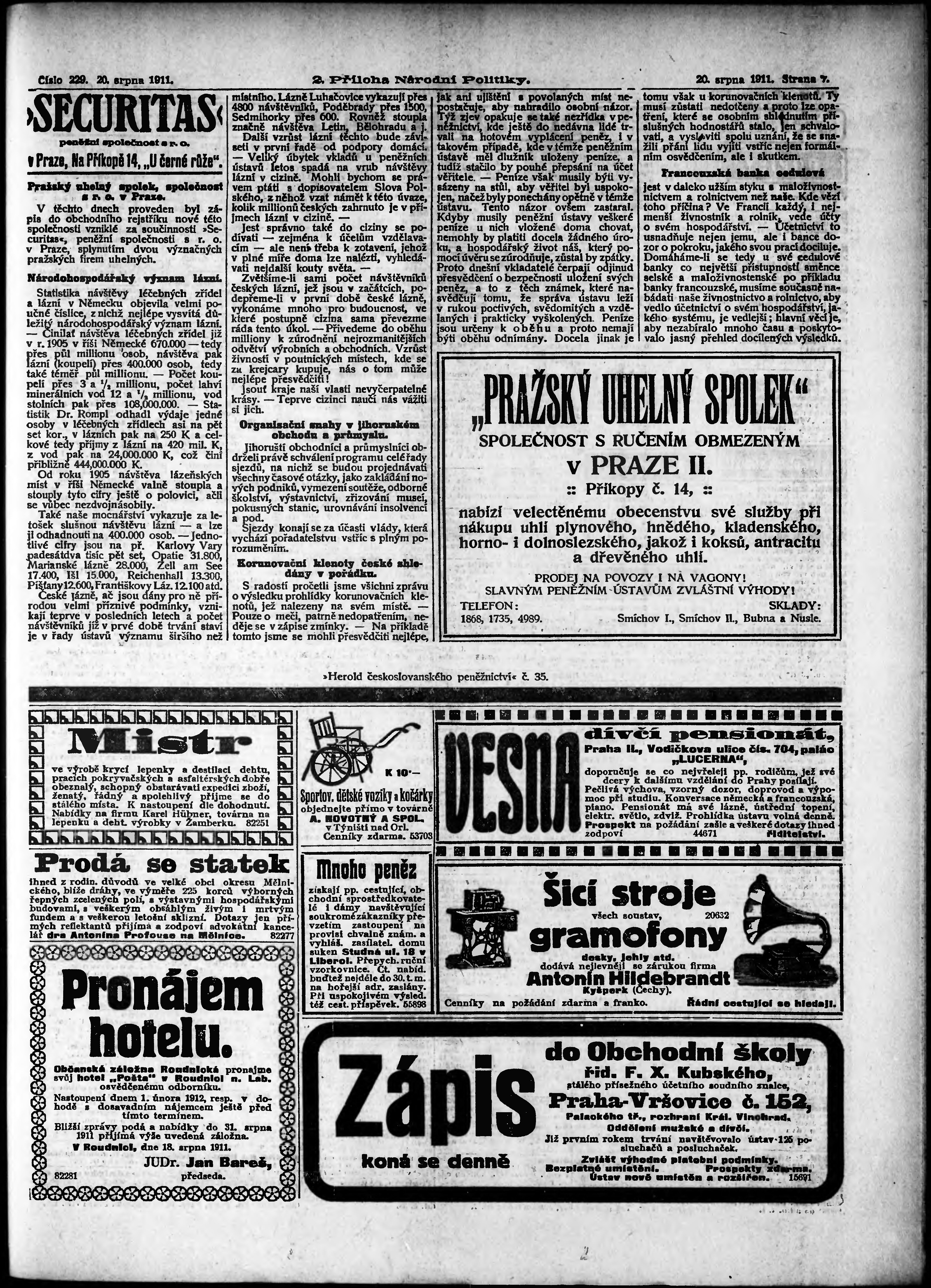Datum vydání výtisku: 20.8.1911