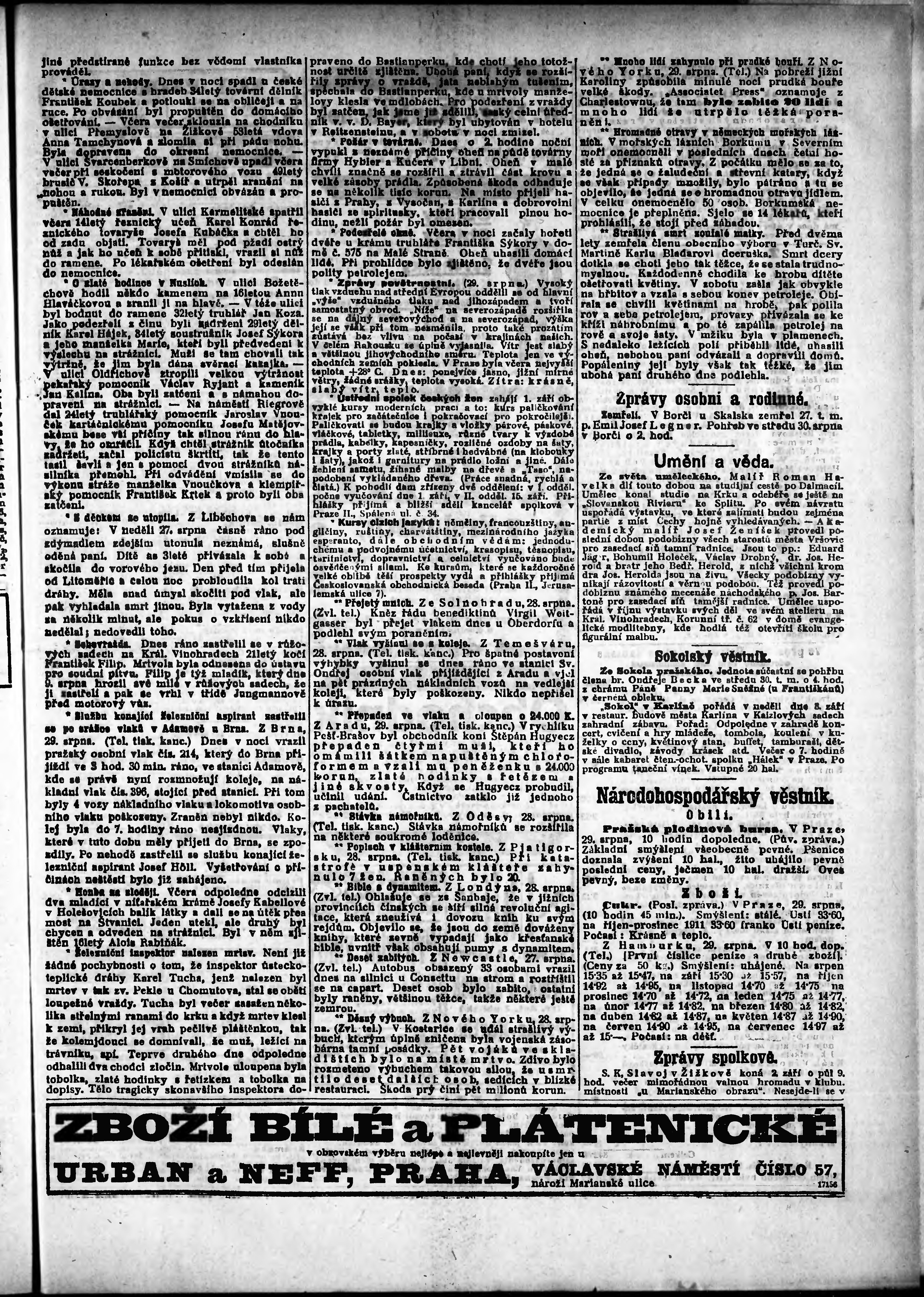 * Datum vydání výtisku: 29.8.1911 Číslo výtisku: 238 Poznámky k výtisku: odpolední vydání;