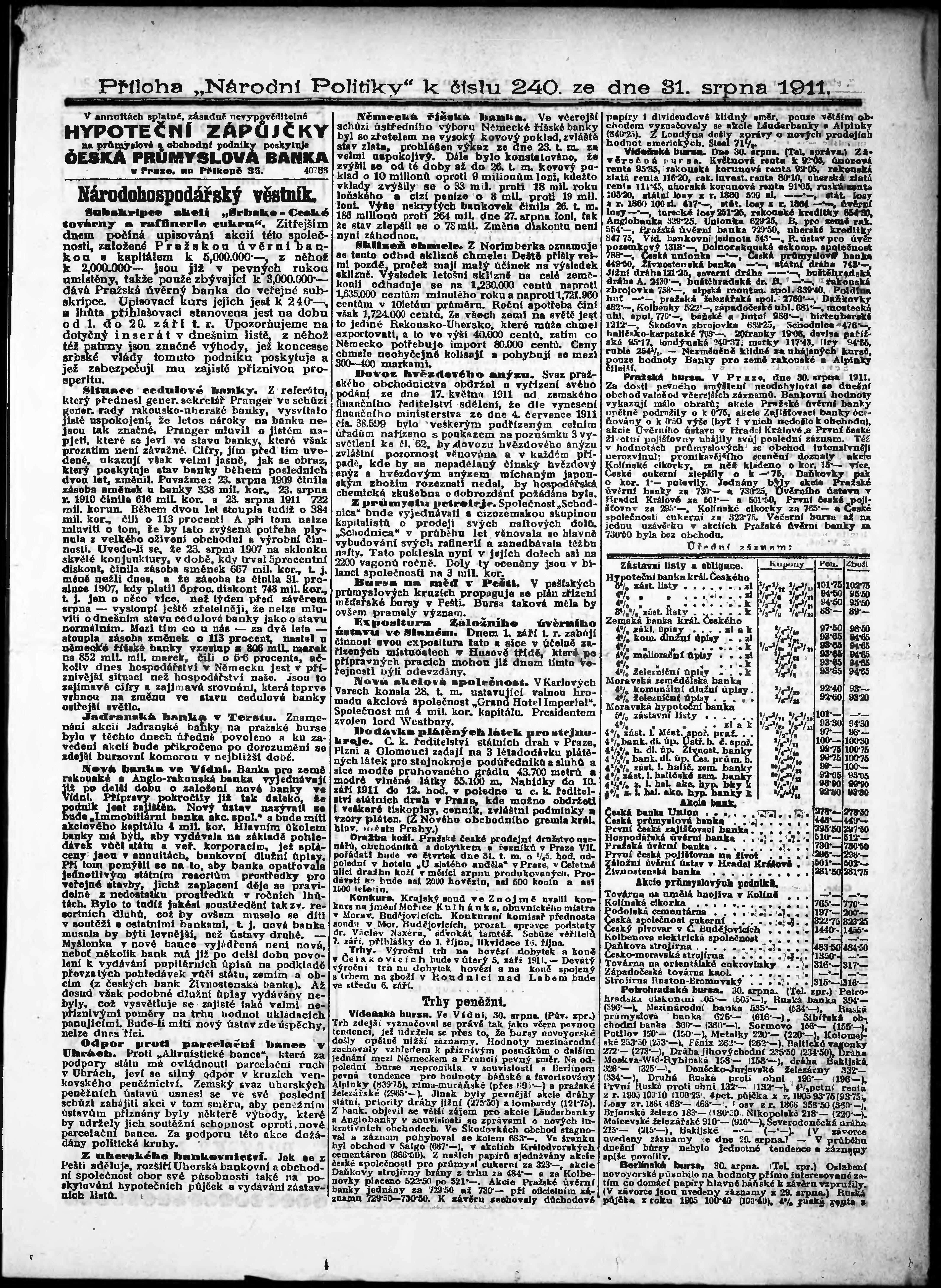 * Datum vydání výtisku: 31.8.1911 Číslo výtisku: 240 Typ výtisku: příloha