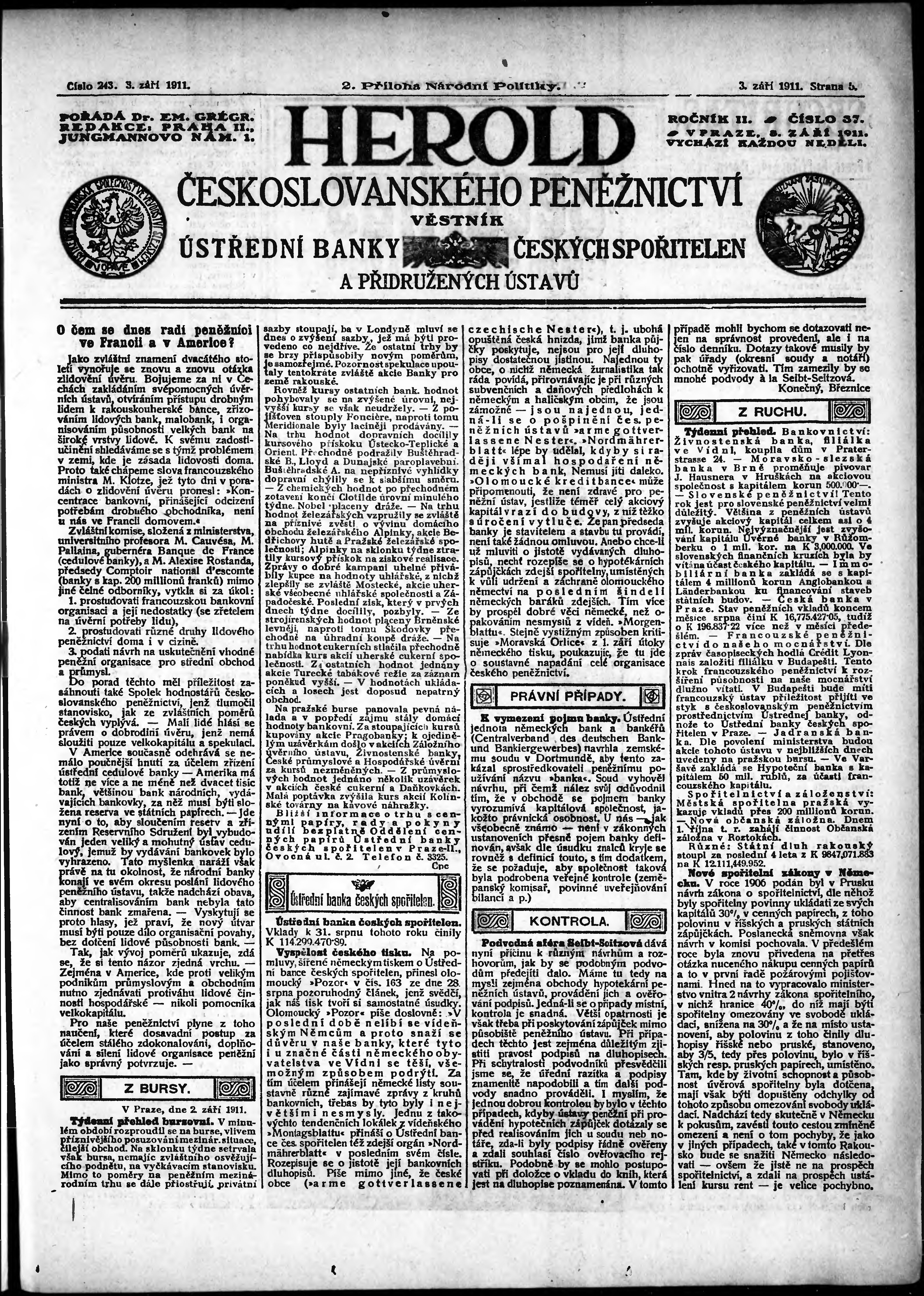 Poznámky k výtisku: 2. příloha; obsahuje č. 37 Herold českoslovanského peněžnictví;