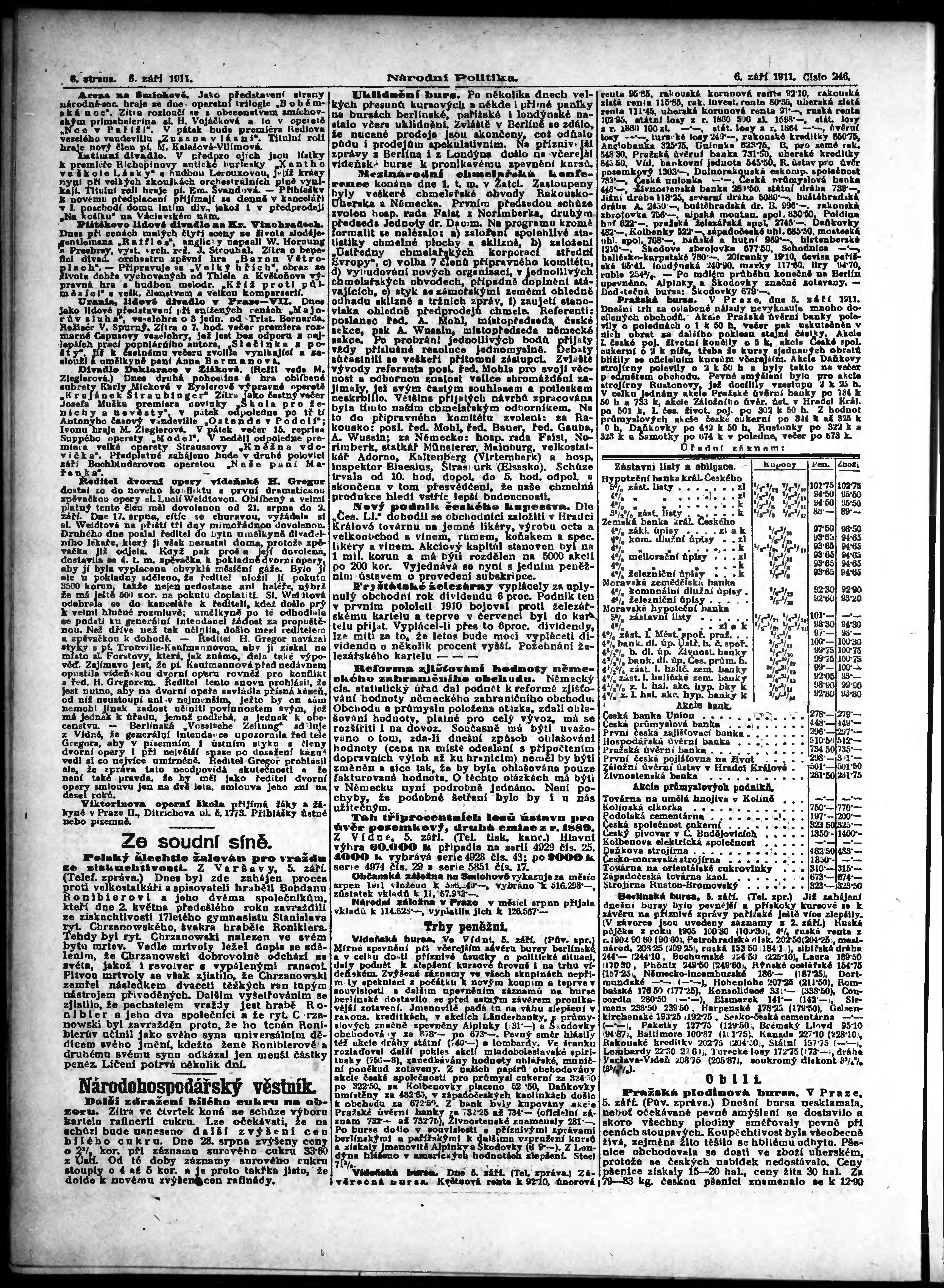 * Datum vydání výtisku: 6.9.1911 Číslo výtisku: 246 Poznámky k výtisku: ranní vydání;