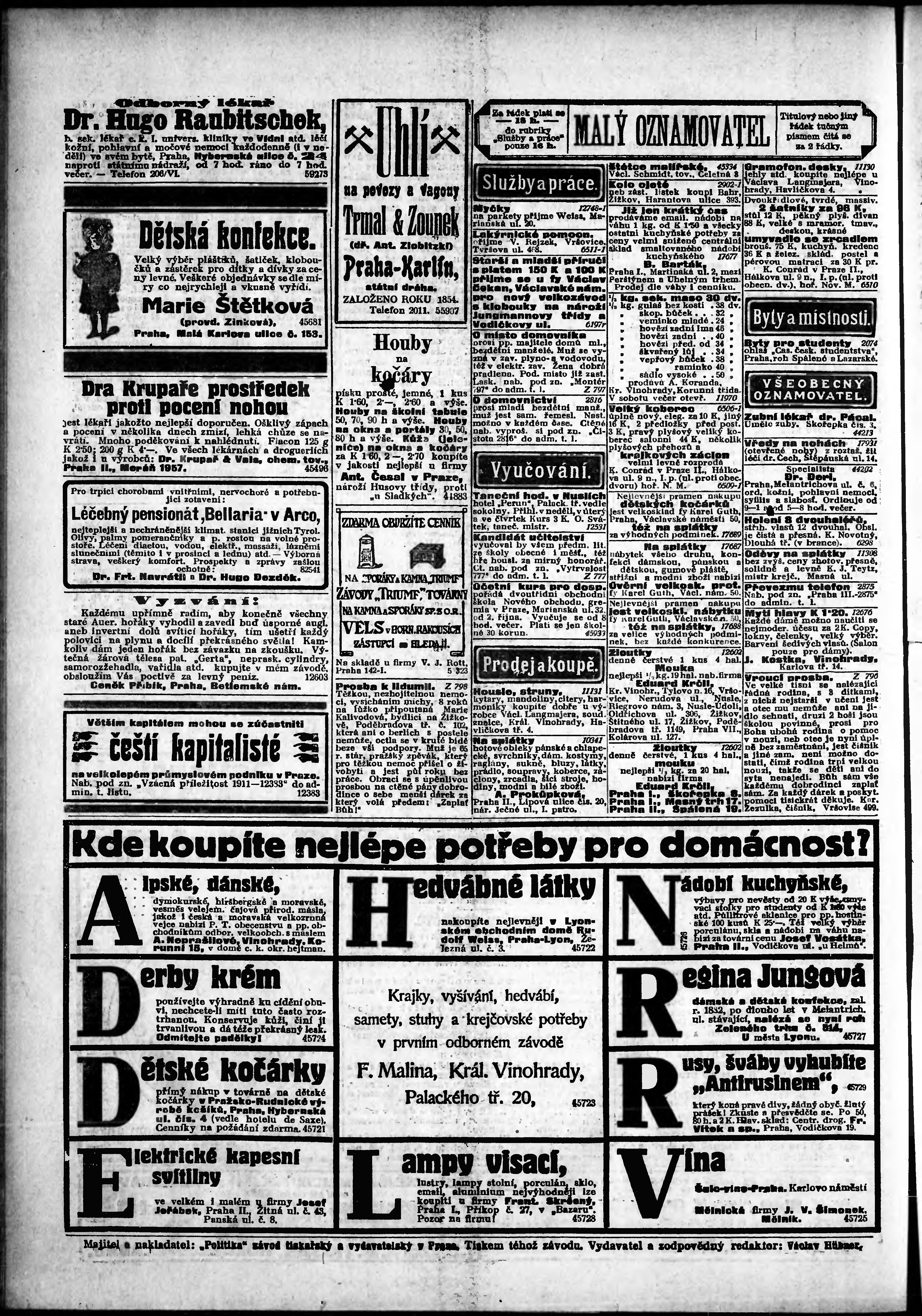 * Datum vydání výtisku: 23.9.1911 Číslo výtisku: 263 Poznámky k výtisku: odpolední vydání;