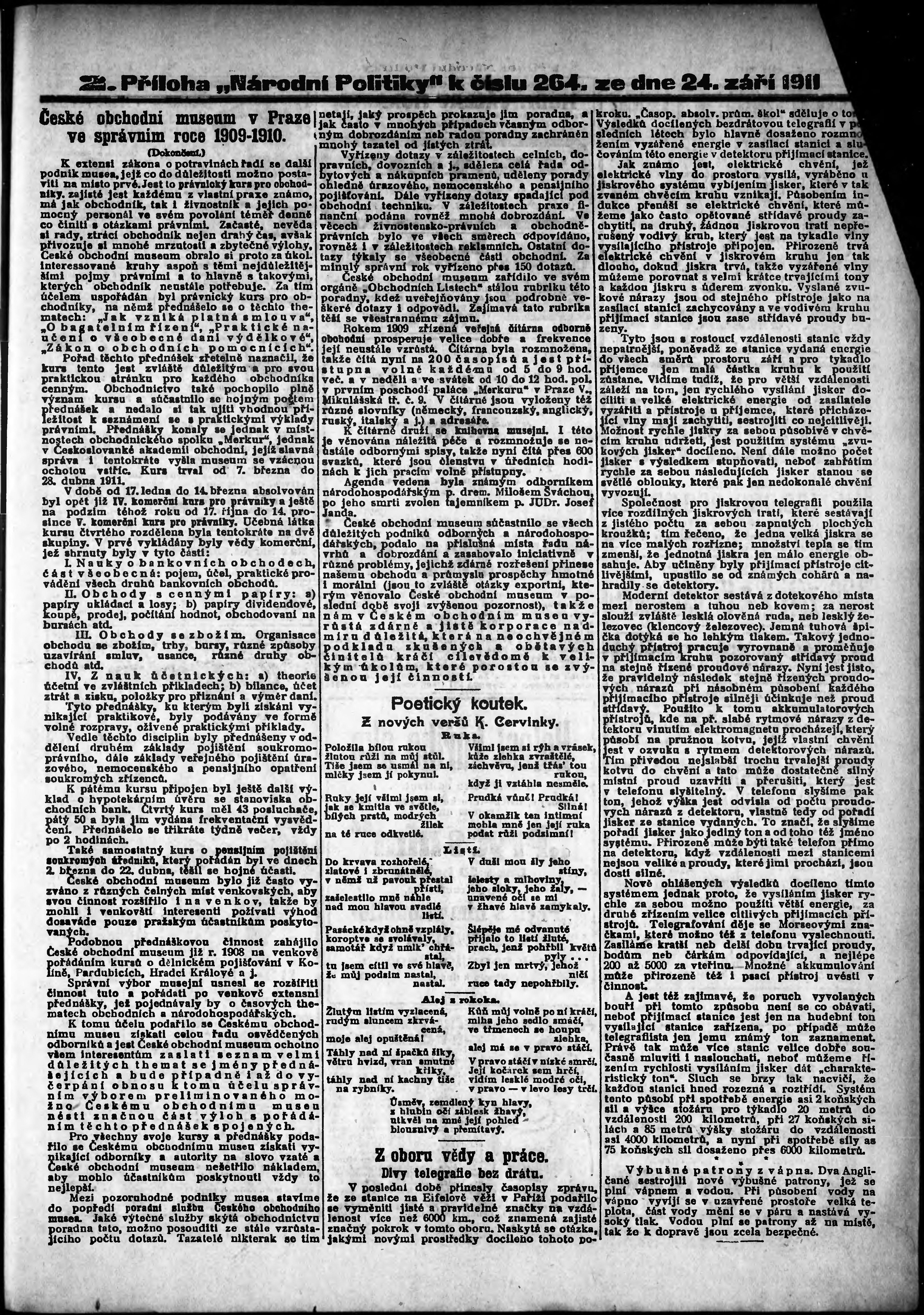 * Datum vydání výtisku: 24.9.1911 Číslo výtisku: 264 Typ výtisku: příloha Poznámky k výtisku: 2. příloha;
