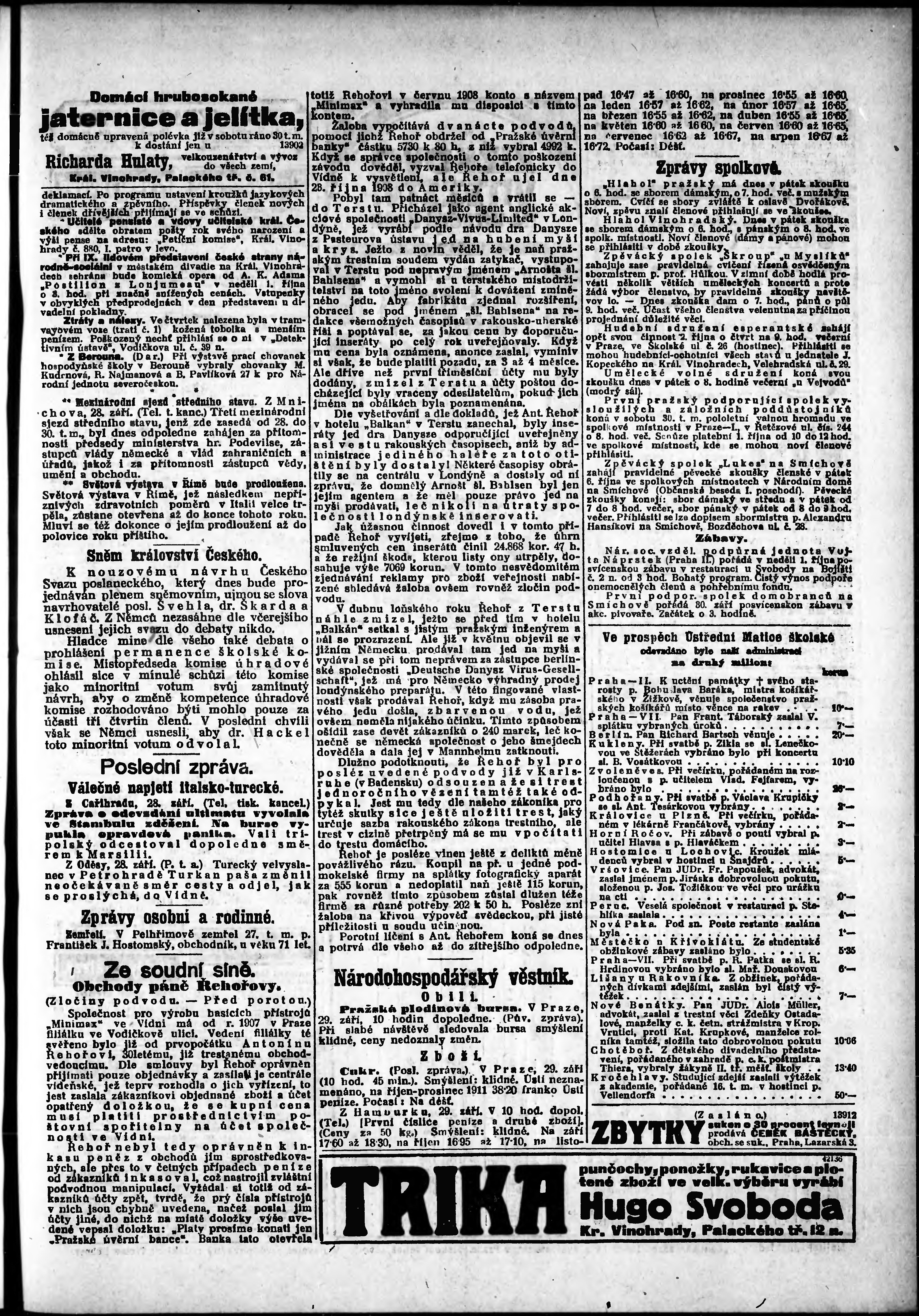* Datum vydání výtisku: 29.9.1911 Číslo výtisku: 269 Poznámky k výtisku: odpolední vydání;