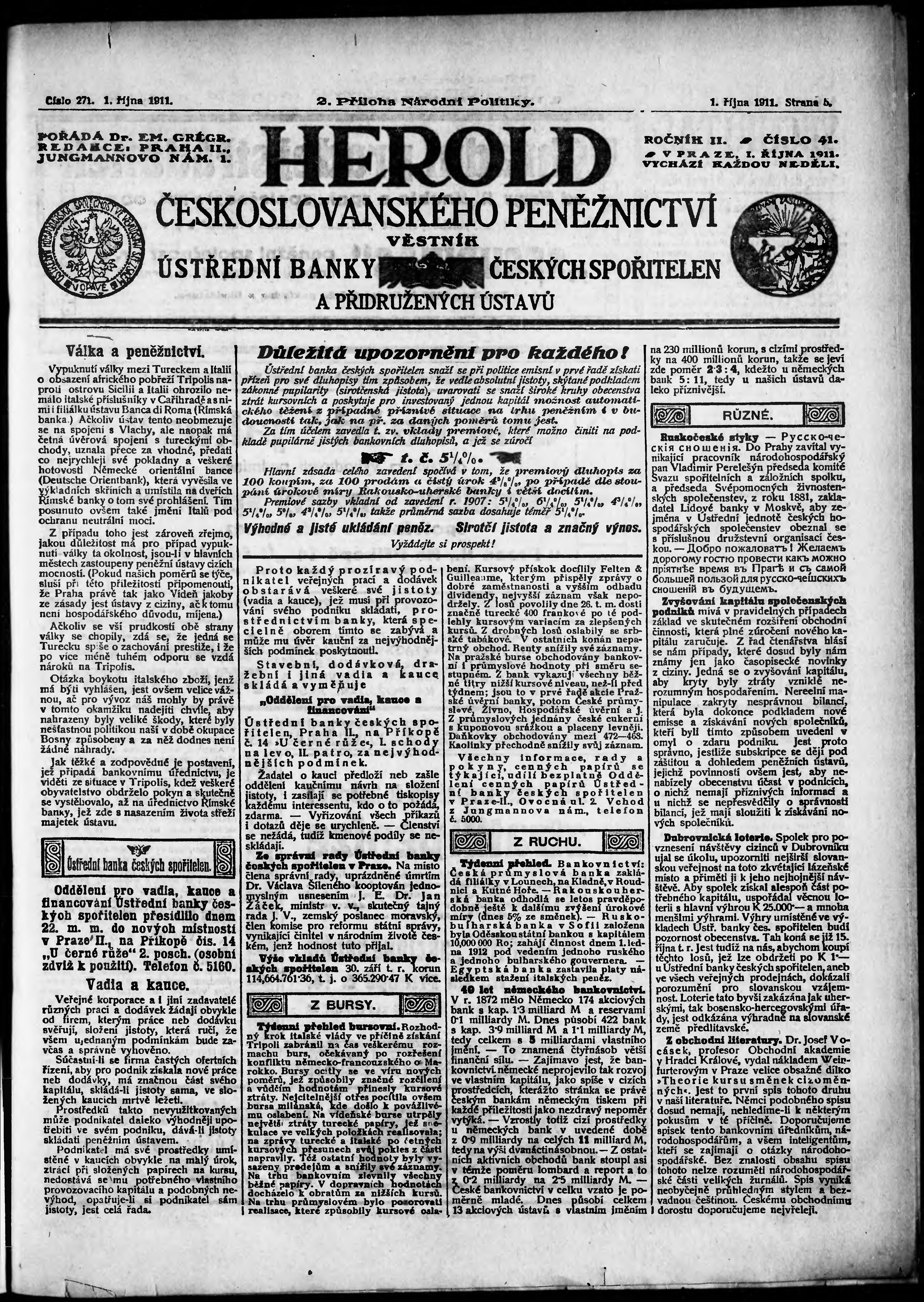 Poznámky k výtisku: 2. příloha; obsahuje č. 41 Herold českoslovanského peněžnictví;
