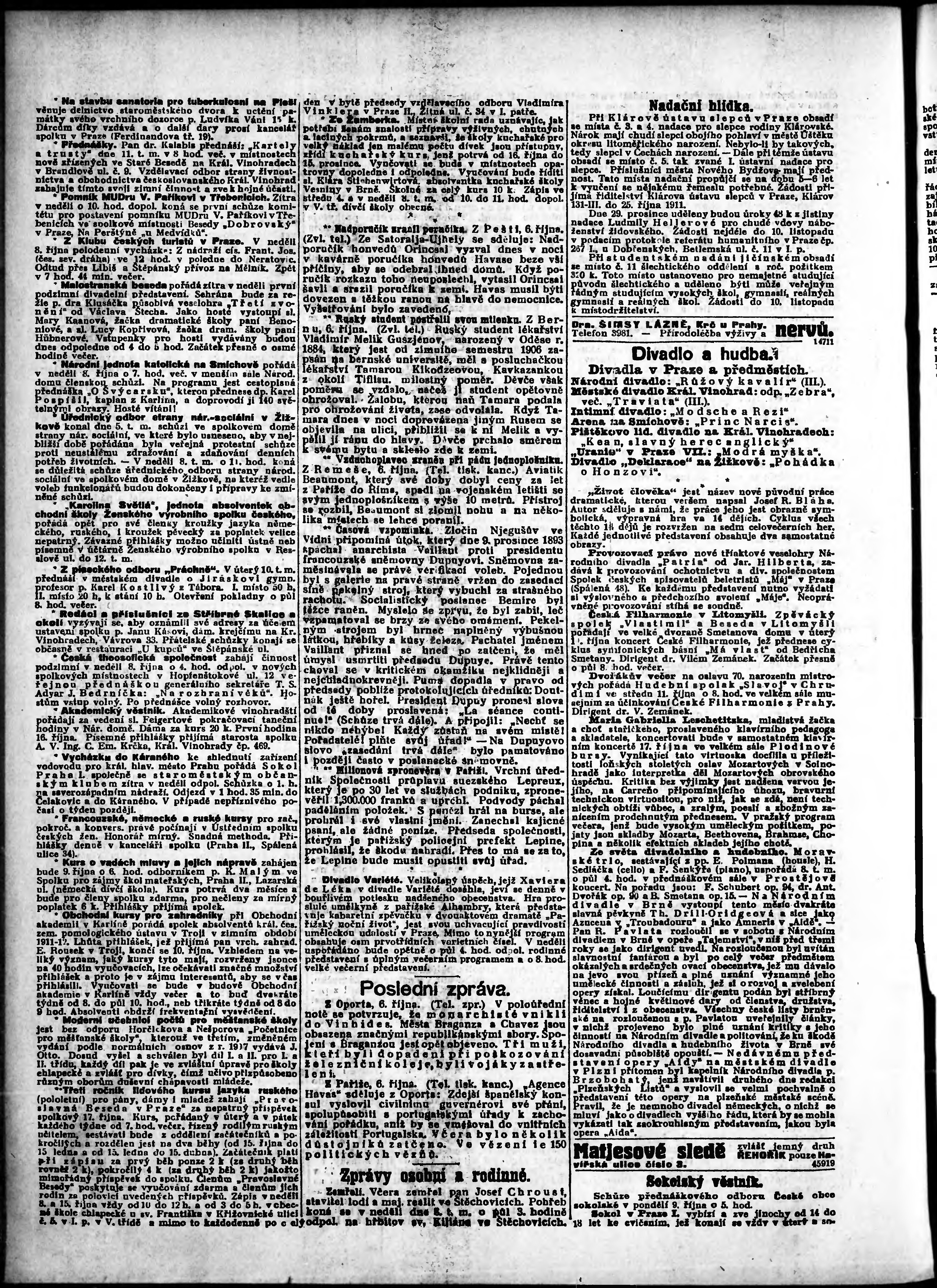* Datum vydání výtisku: 7.10.1911 Číslo výtisku: 277 Poznámky k výtisku: odpolední vydání;