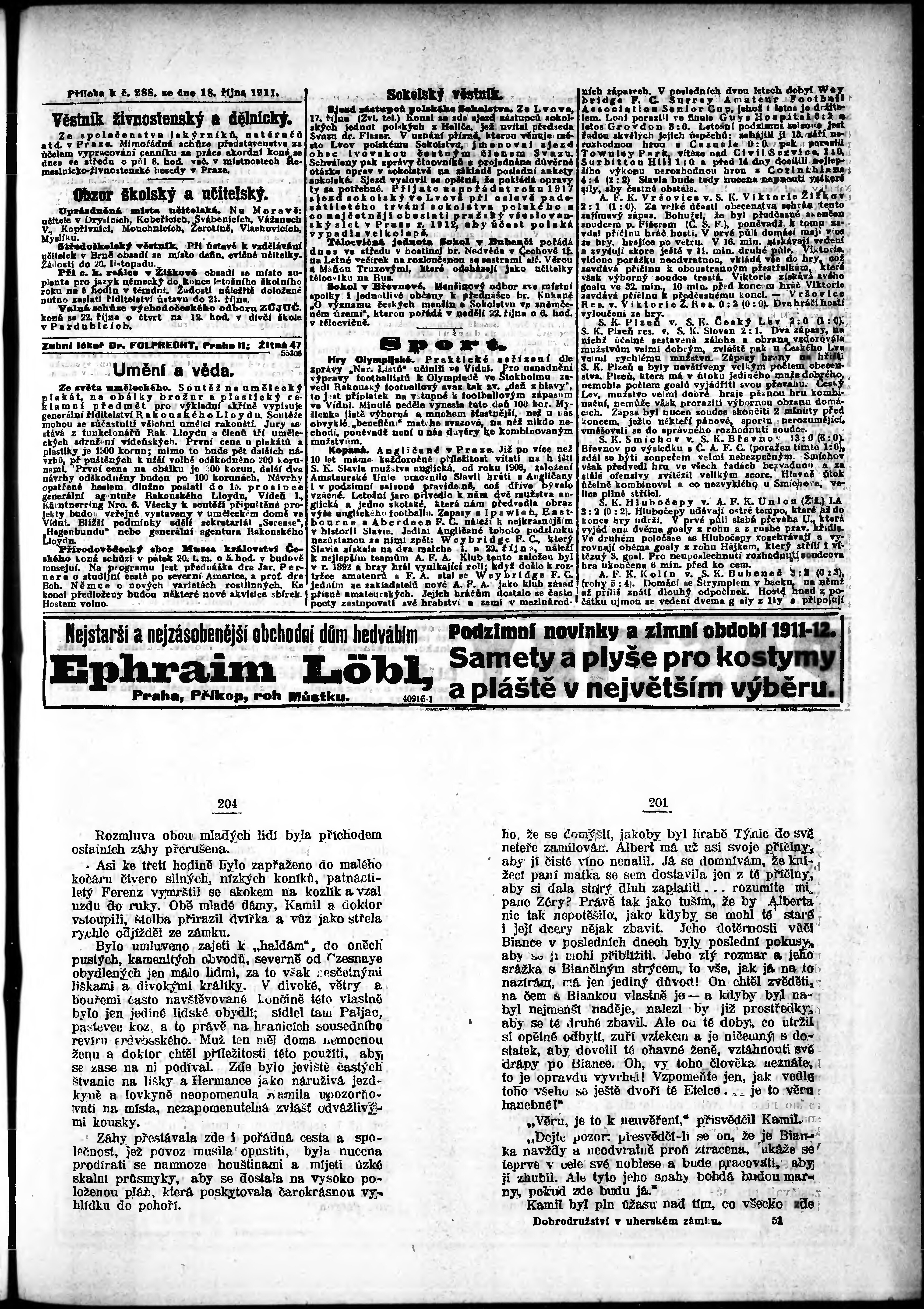 * Datum vydání výtisku: 18.10.1911 Číslo výtisku: 288 Poznámky k výtisku: odpolední vydání;