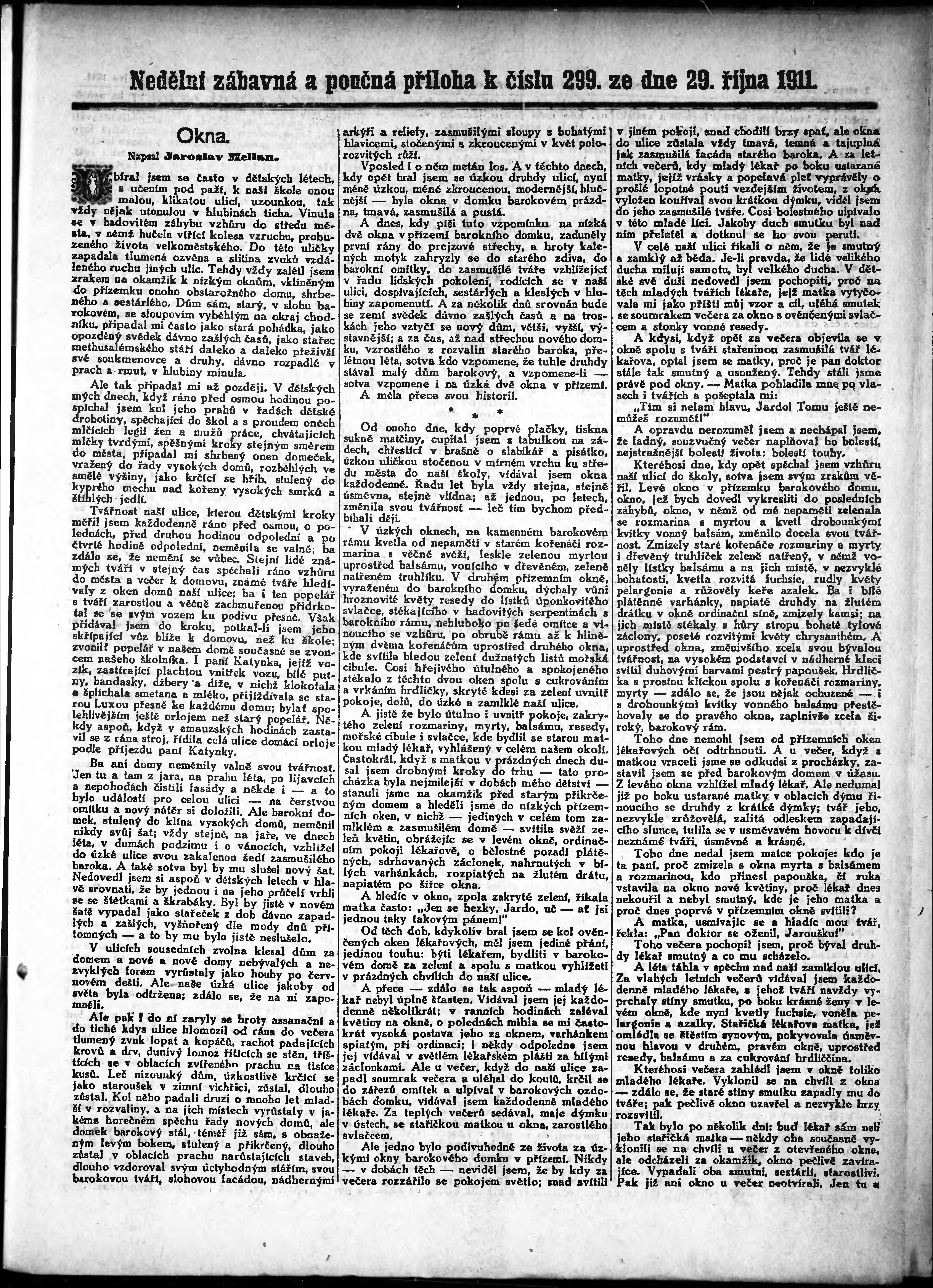 * Datum vydání výtisku: 29.10.1911 Číslo výtisku: 299 Typ výtisku: příloha