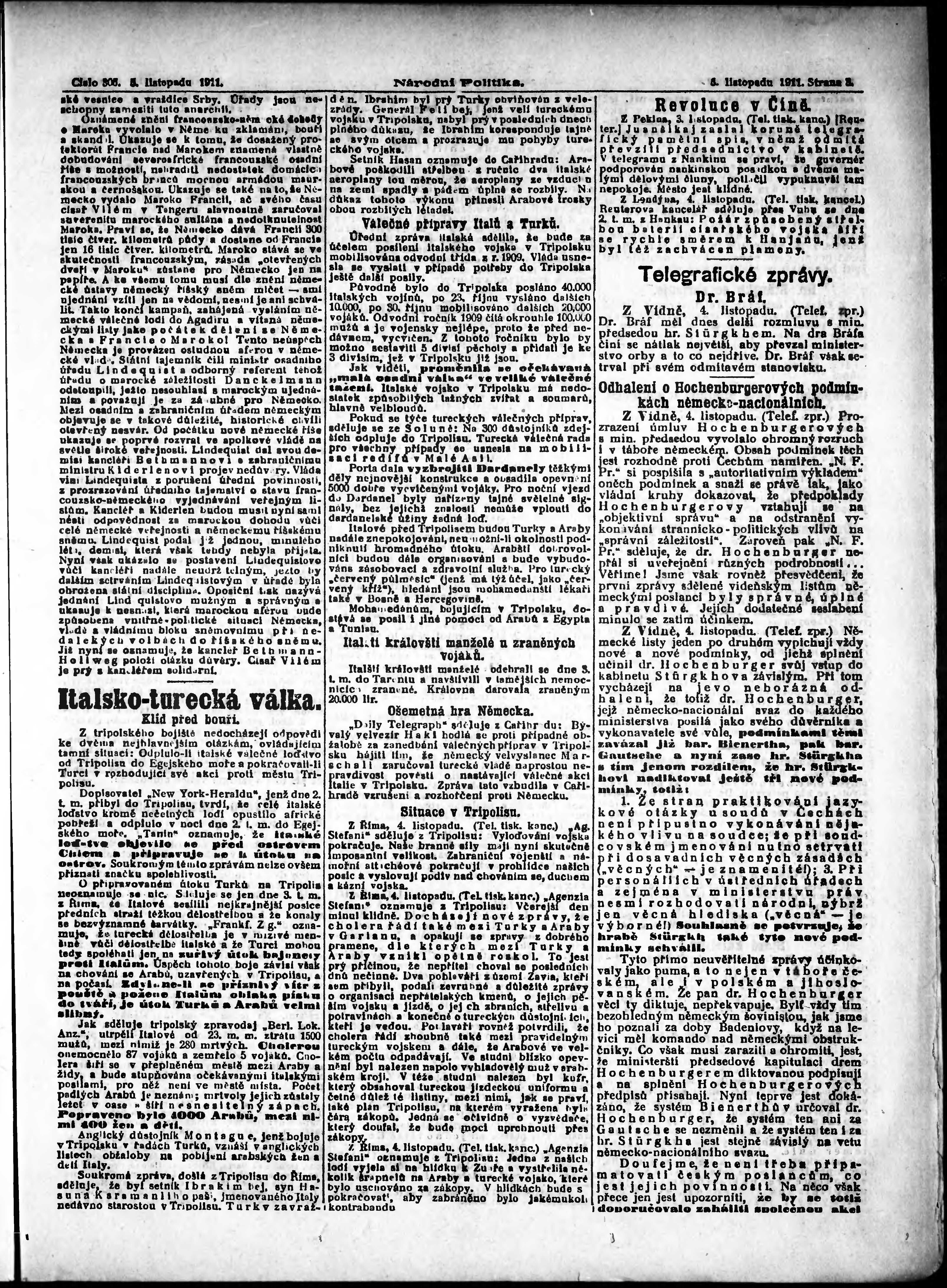 * Datum vydání výtisku: 5.11.1911 Číslo výtisku: 306 Poznámky k výtisku: ranní vydání;