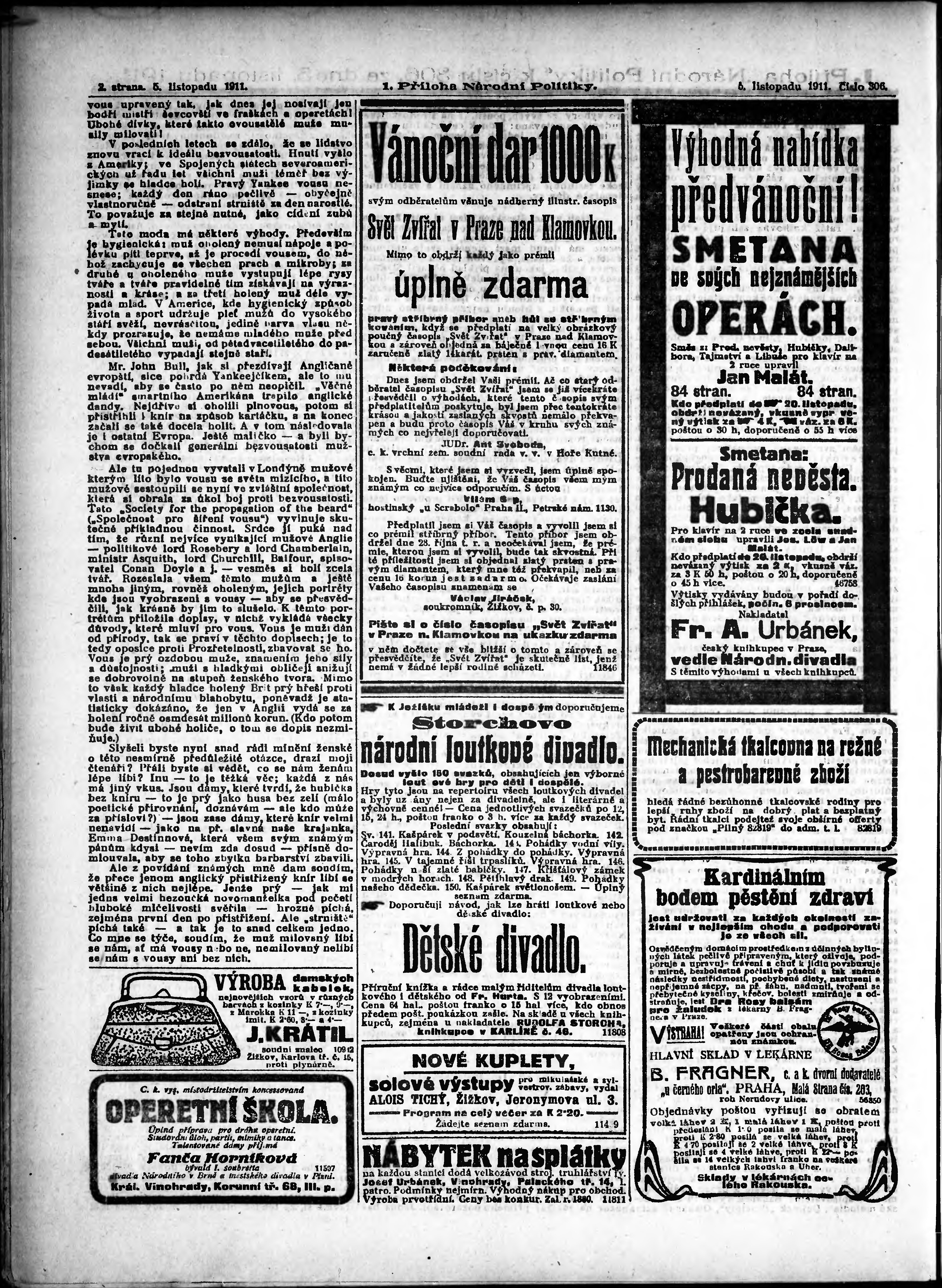 * Datum vydání výtisku: 5.11.1911 Číslo výtisku: 306 Typ výtisku: příloha Poznámky k výtisku: 1. příloha;