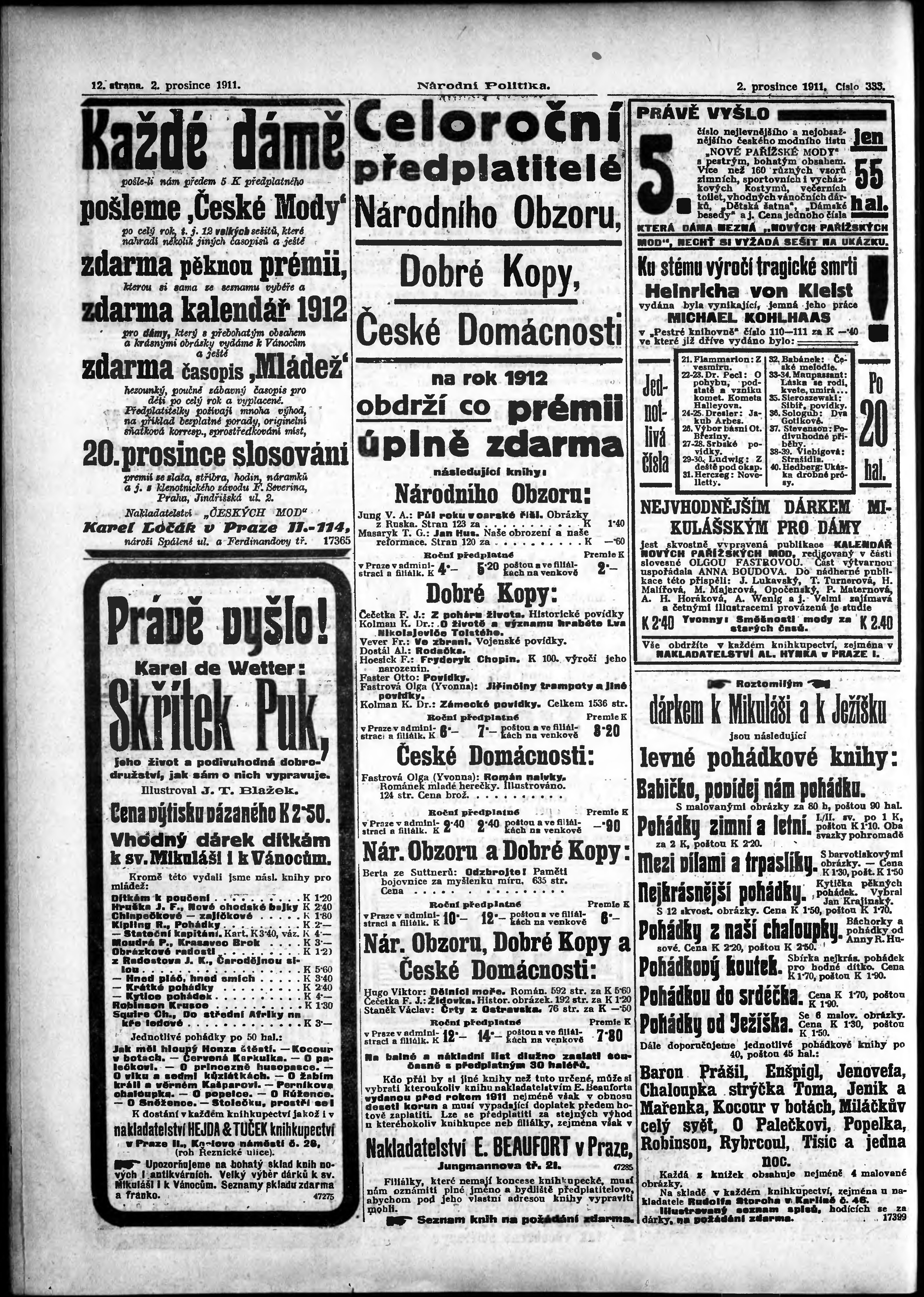 ranní vydání; s. 13 - 14 není k dispozici;