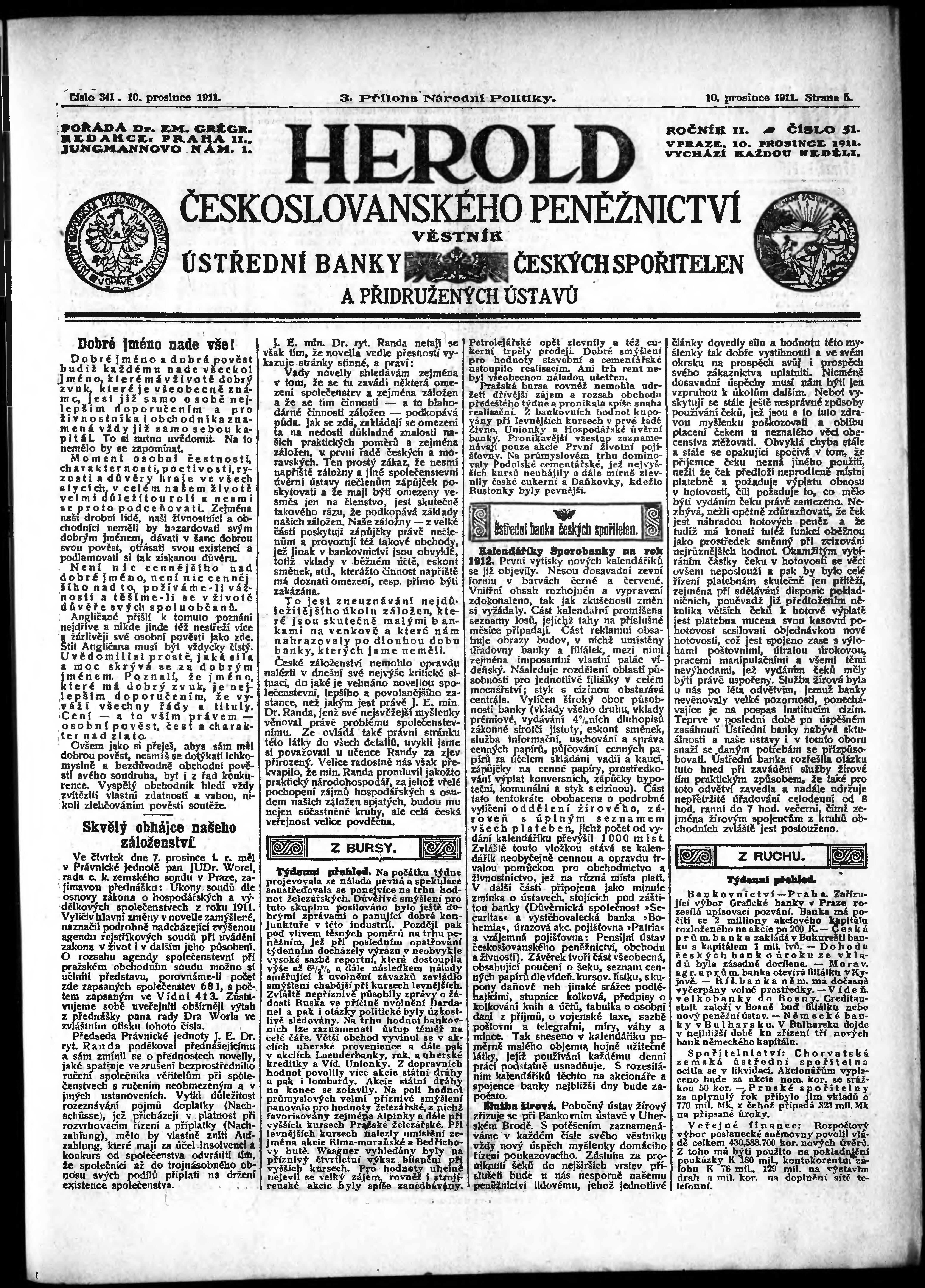 Poznámky k výtisku: 3. příloha; obsahuje č. 51 Herold českoslovanského peněžnictví;