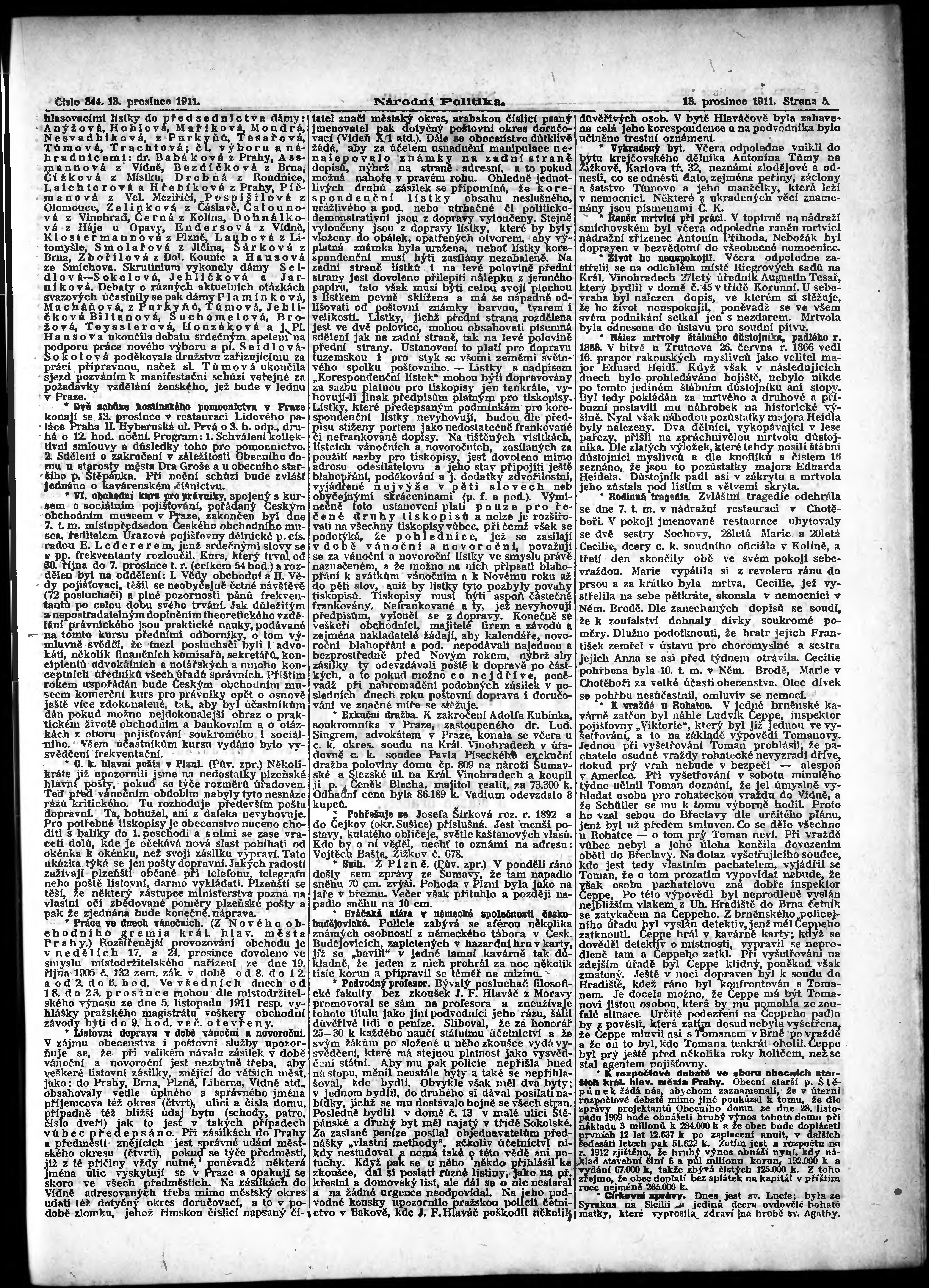 * Datum vydání výtisku: 13.12.1911 Číslo výtisku: 344 Poznámky k výtisku: ranní vydání;