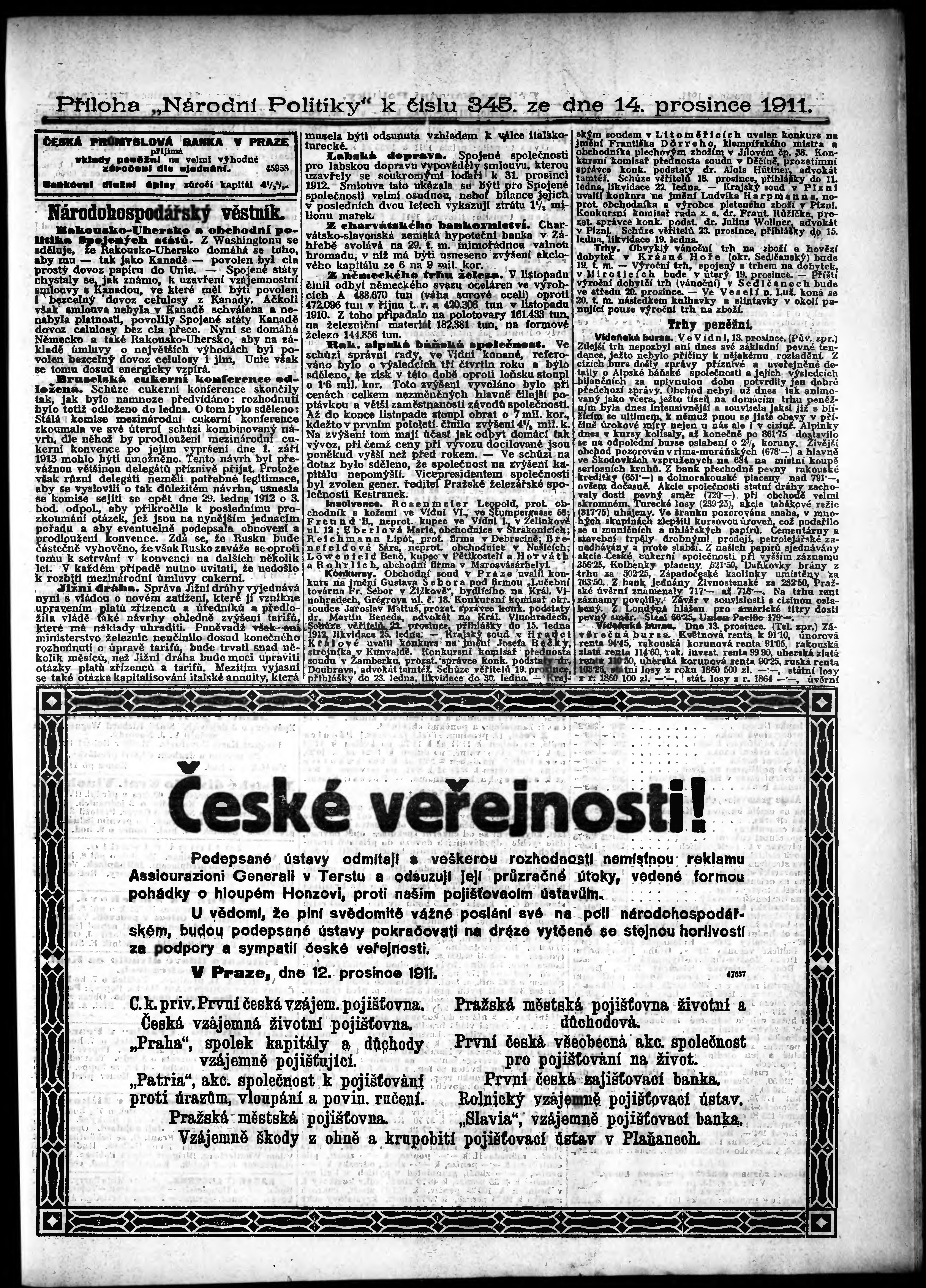 * Datum vydání výtisku: 14.12.1911 Číslo výtisku: 345 Typ výtisku: příloha