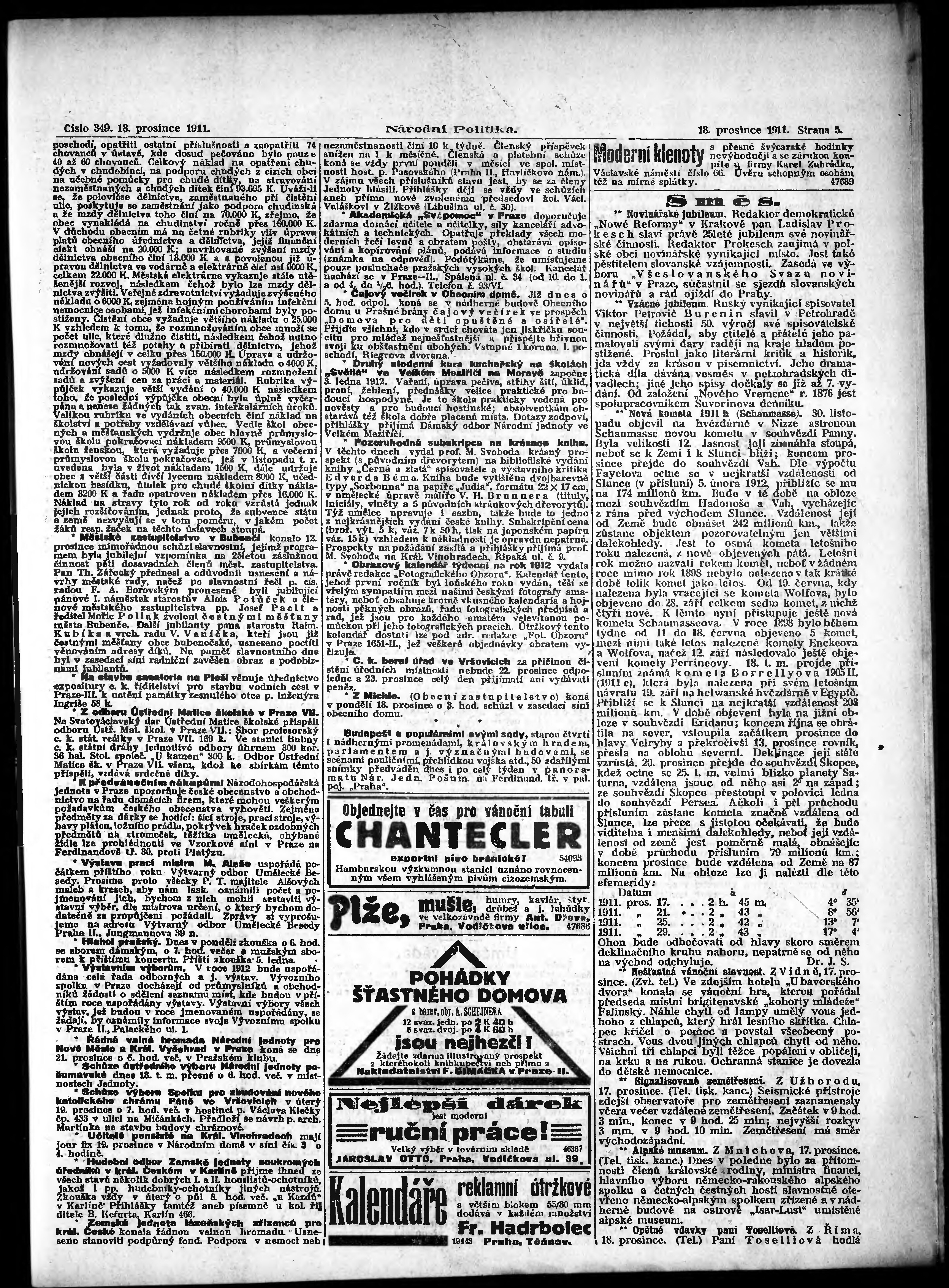 * Datum vydání výtisku: 18.12.1911 Číslo výtisku: 349 Poznámky k výtisku: ranní vydání;