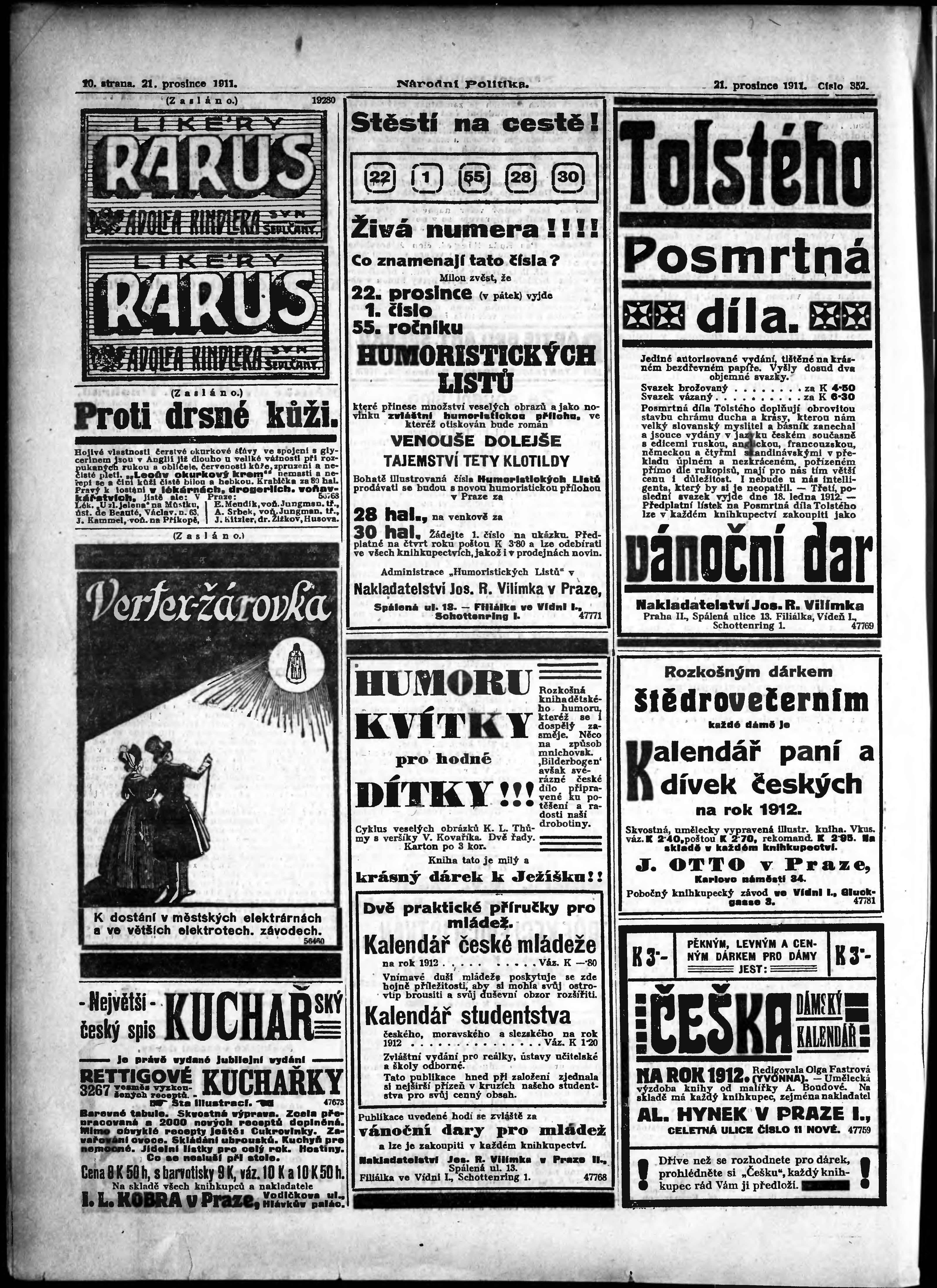 * Datum vydání výtisku: 21.12.1911 Číslo výtisku: 352 Poznámky k výtisku: ranní vydání;