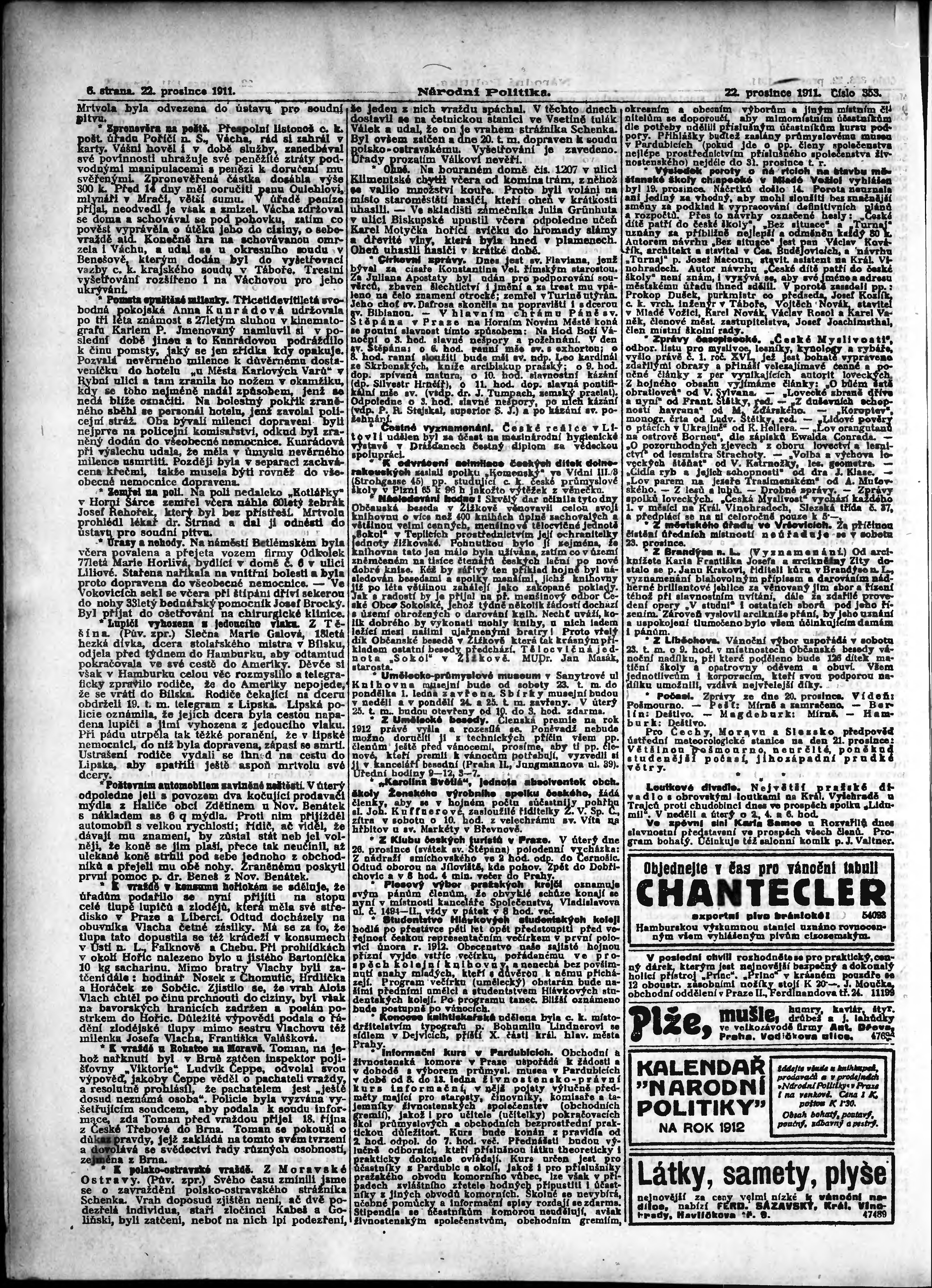 * Datum vydání výtisku: 22.12.1911 Číslo výtisku: 353 Poznámky k výtisku: ranní vydání;