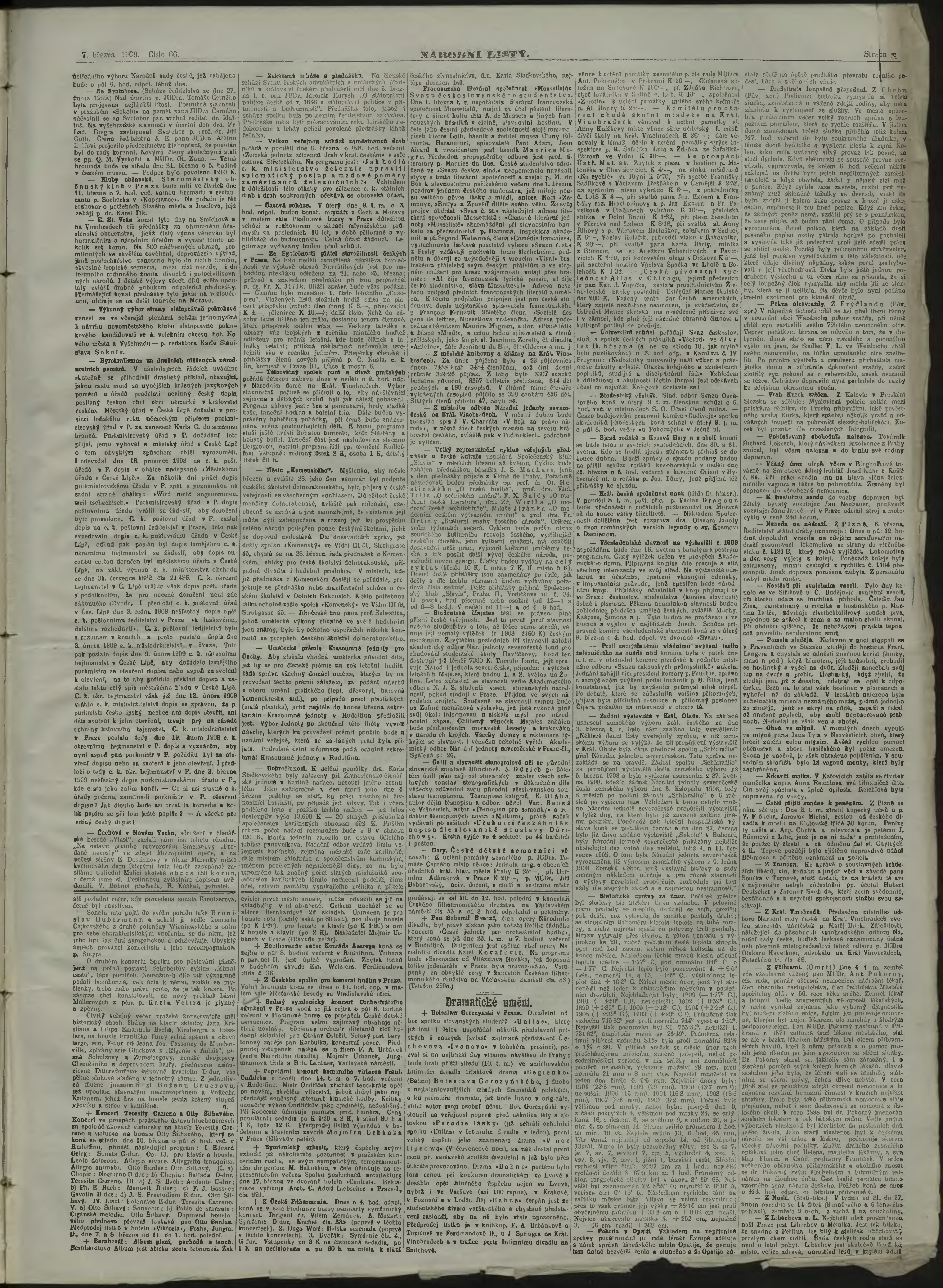 * Datum vydání výtisku: 7.3.1909 Číslo výtisku: 66 Poznámky k výtisku: ranní vydání;