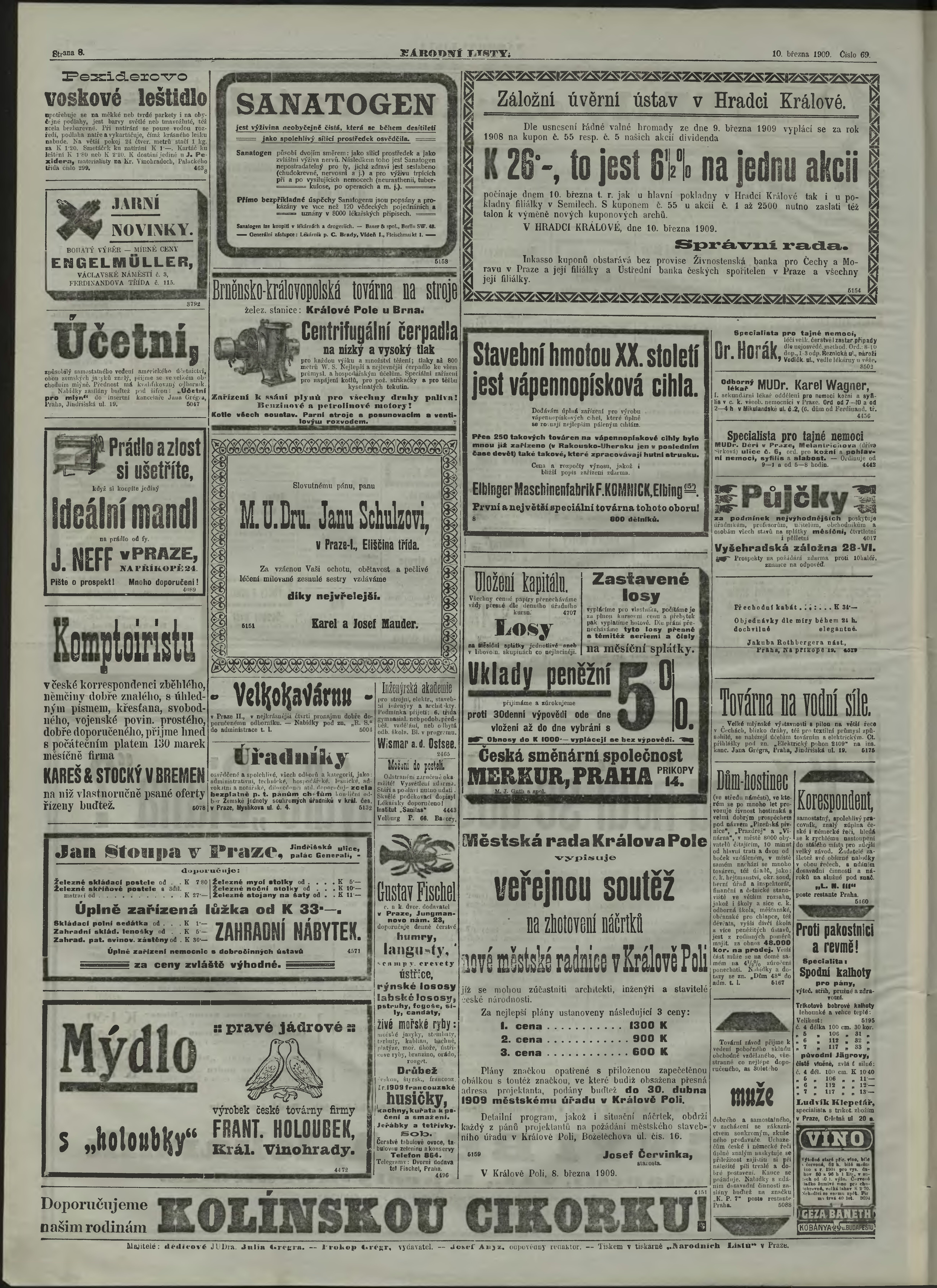 * Datum vydání výtisku: 10.3.1909 Číslo výtisku: 69 Poznámky k výtisku: ranní vydání;