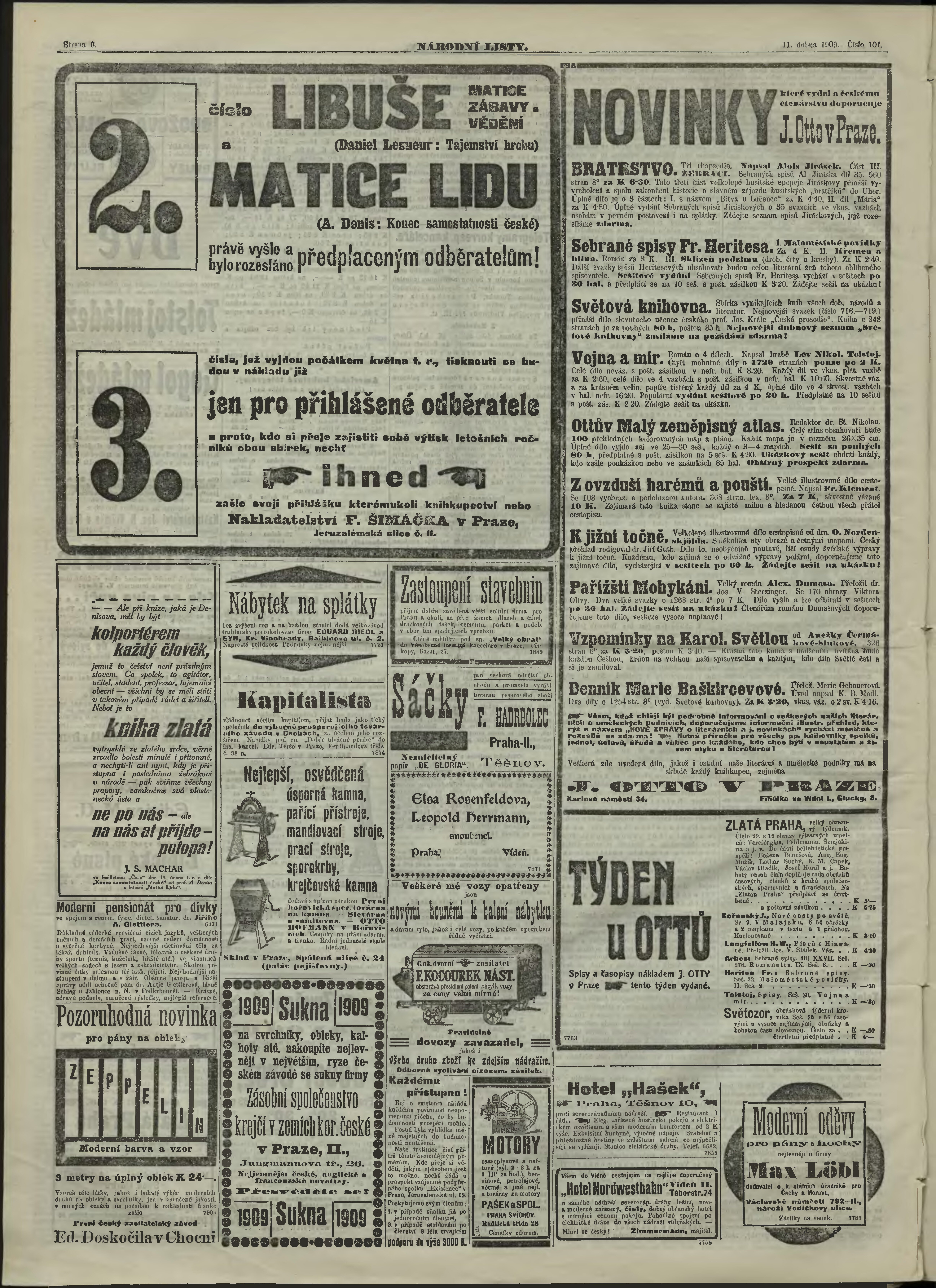 * Datum vydání výtisku: 11.4.1909 Číslo výtisku: 101 Poznámky k výtisku: ranní vydání; s. 29 není k dispozici;