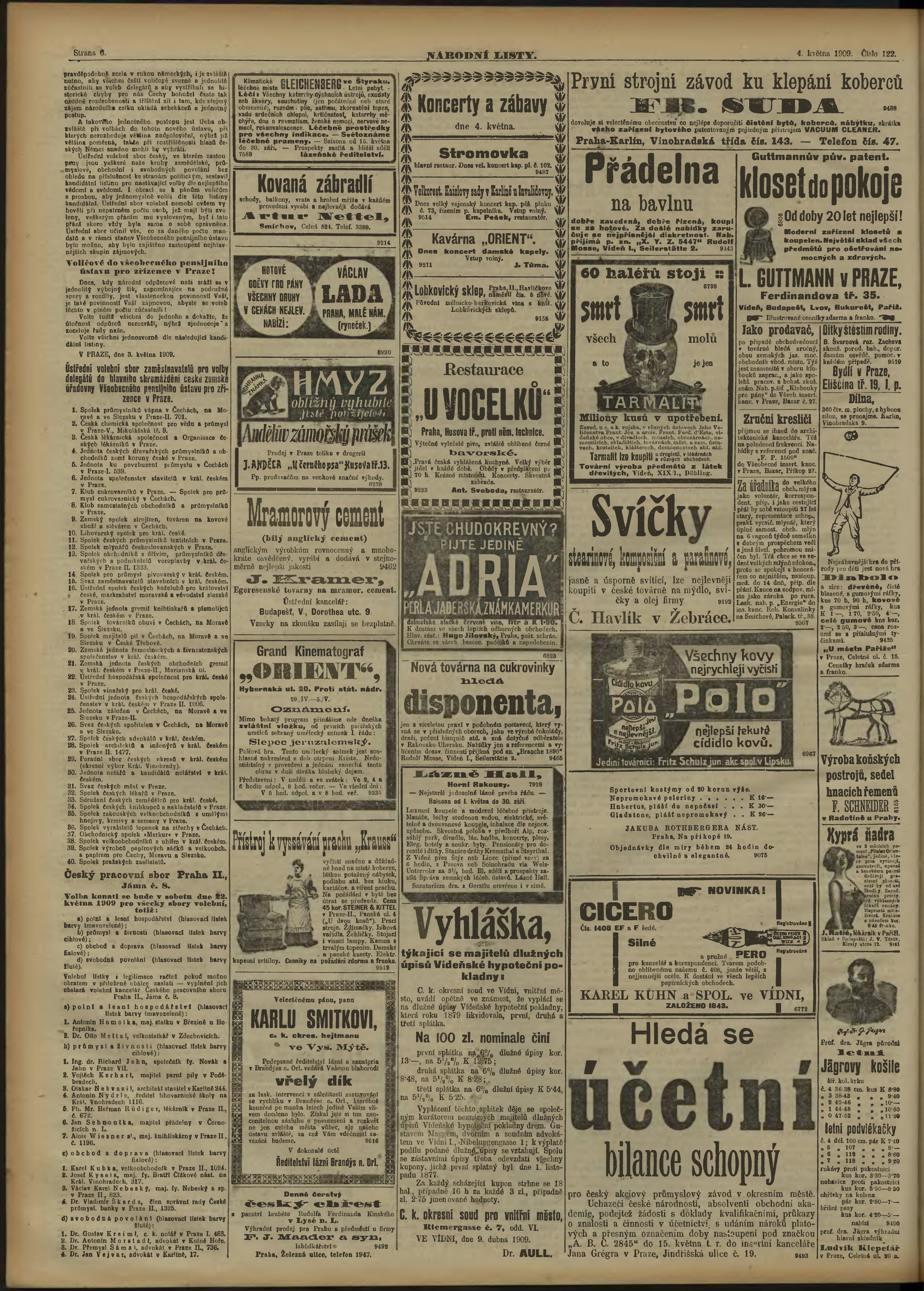 * Datum vydání výtisku: 4.5.1909 Číslo výtisku: 122 Poznámky k výtisku: ranní vydání;