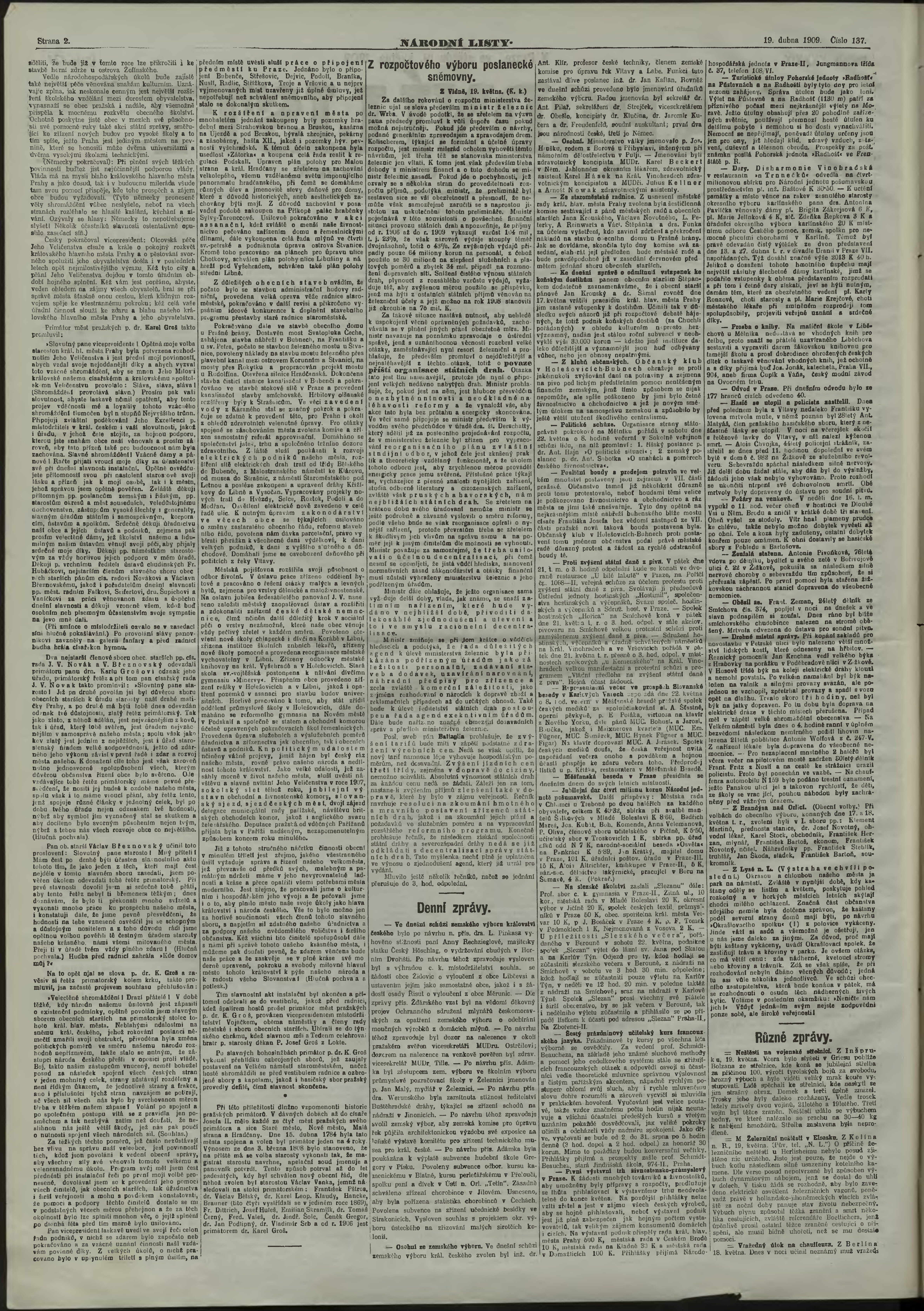 * Datum vydání výtisku: 19.5.1909 Číslo výtisku: 137 Poznámky k výtisku: večerní vydání;