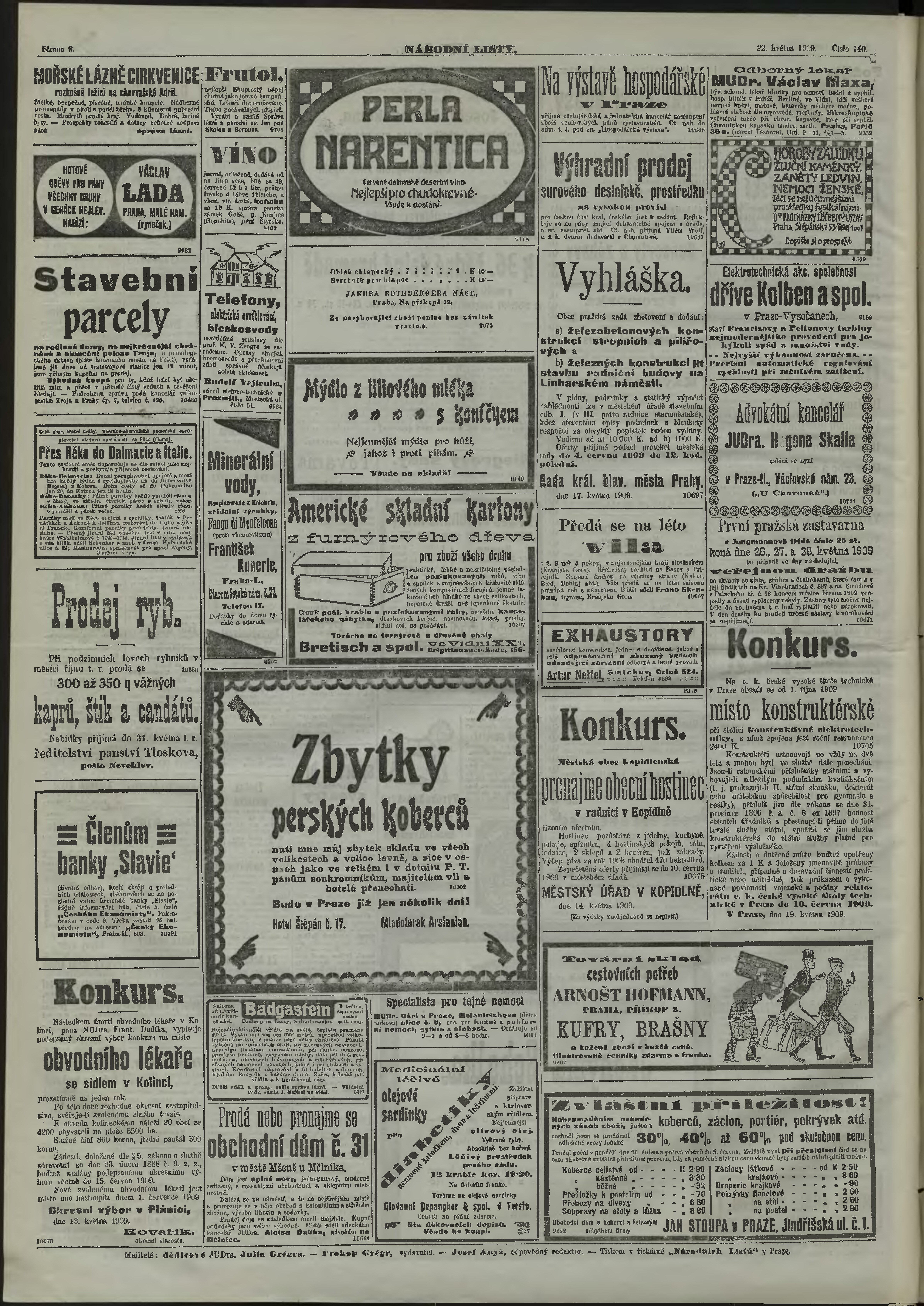 * Datum vydání výtisku: 22.5.1909 Číslo výtisku: 140 Poznámky k výtisku: ranní vydání;